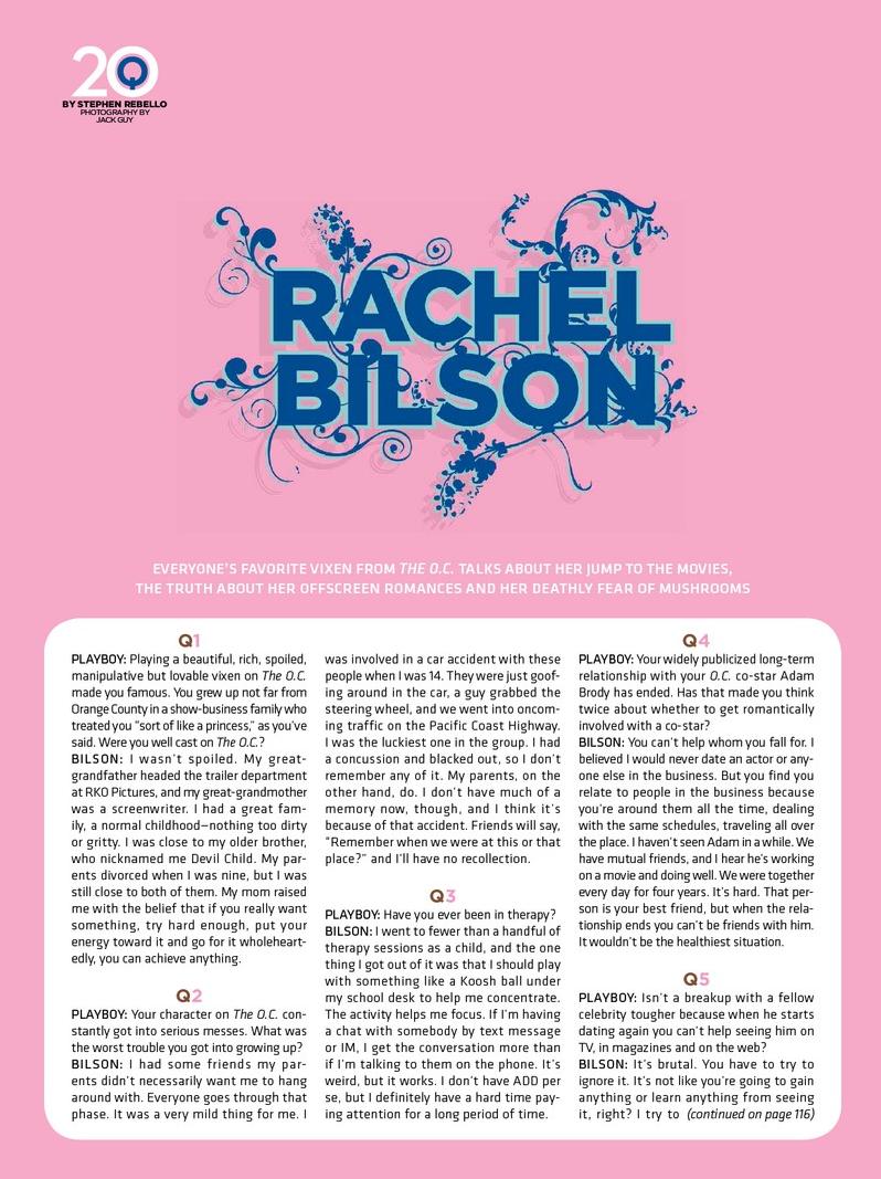 Rachel is not on the cover but she is in playboy (20 Q).