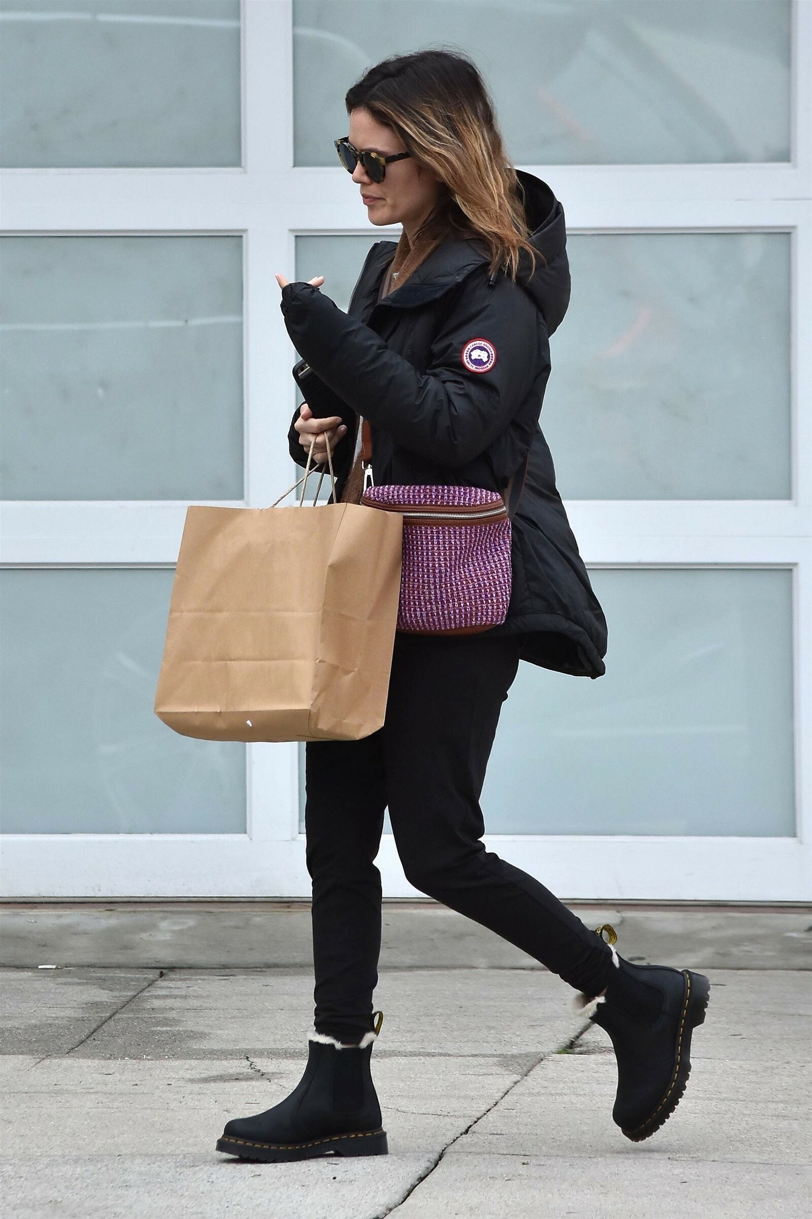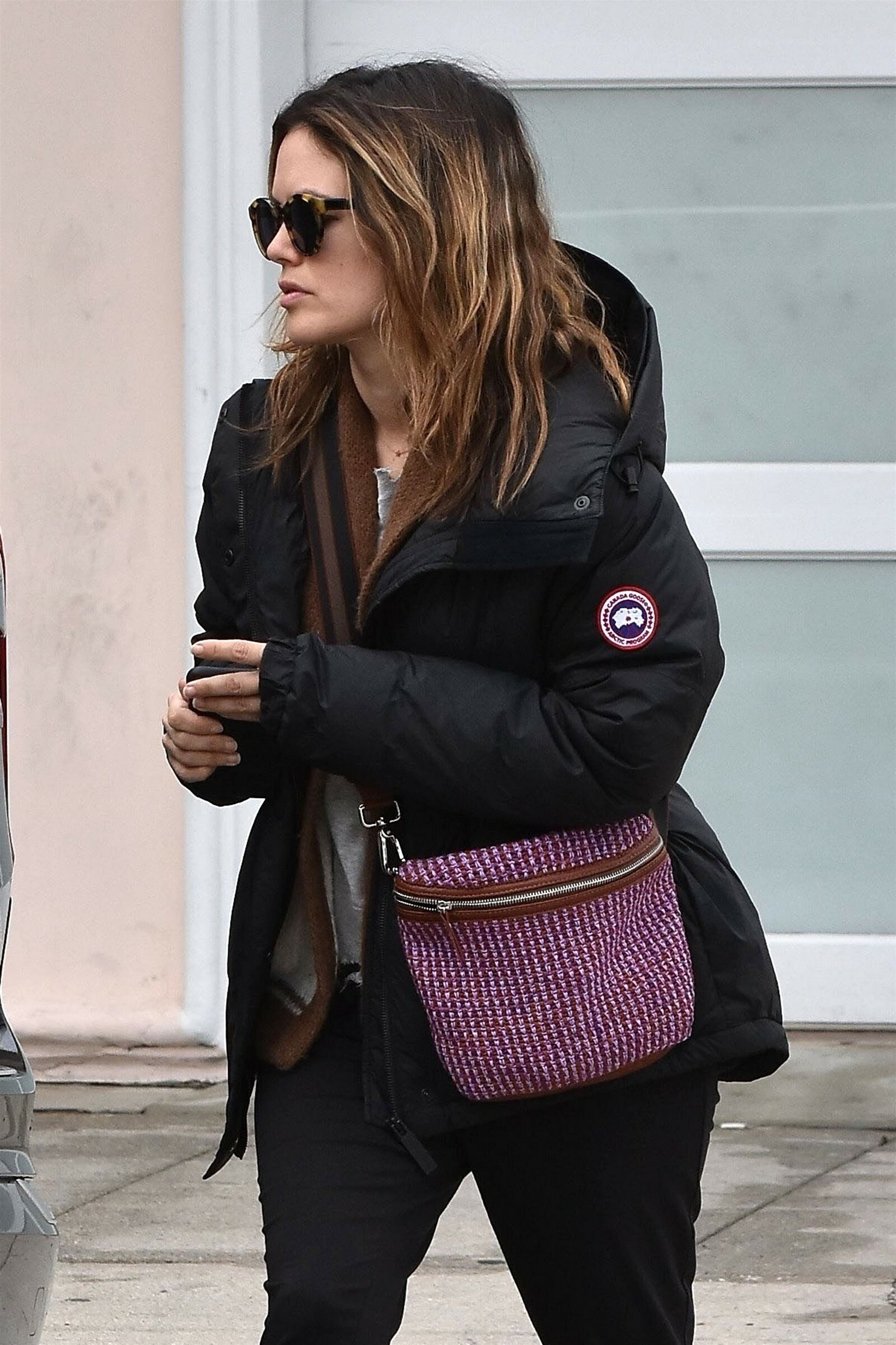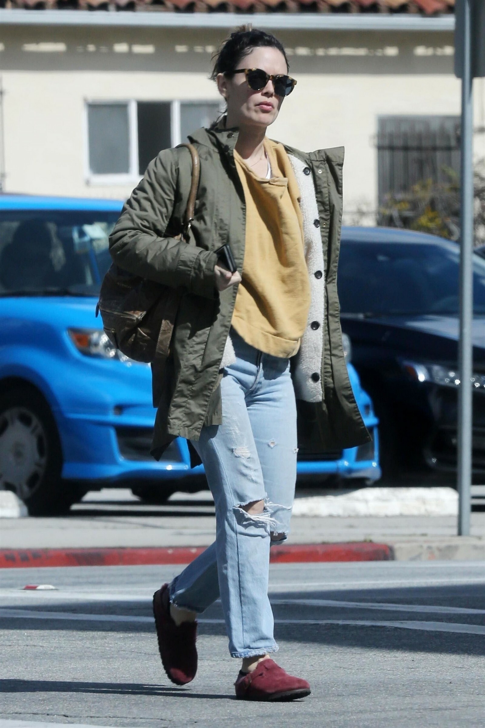 wearing an Ulla Johnson blouse, an Alice McCall leather dress, and Chloe Gosselin shoes