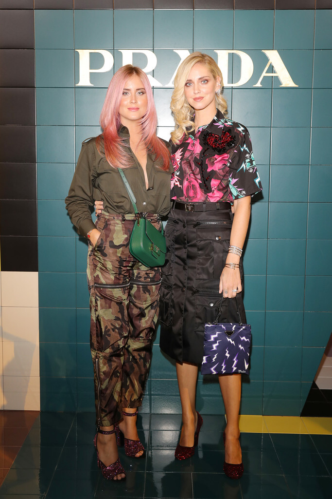 Chiara Ferragni and Valentina Ferragni . attend Prada Spring/Summer 2020 Womenswear Fashion Show on September 18, 2019 in Milan, Italy.