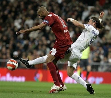 Raul - 8: Another trademark performance from the captain, who put himself about from the first minute until the last and made things difficult for the entire Sevilla backline. Scored the goal of the game; a fantastic effort which put Madrid back in front less than two minutes after Sevilla had equalised. Indispensable.