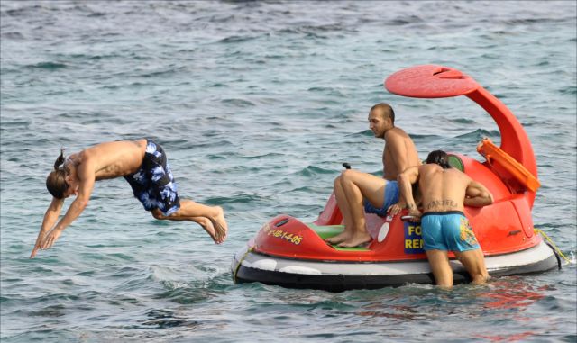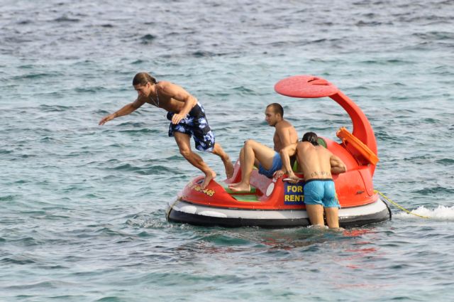 I saw the pics posted of him on vacation, but there is video too. It's really stalker-ish, but he looks so good!