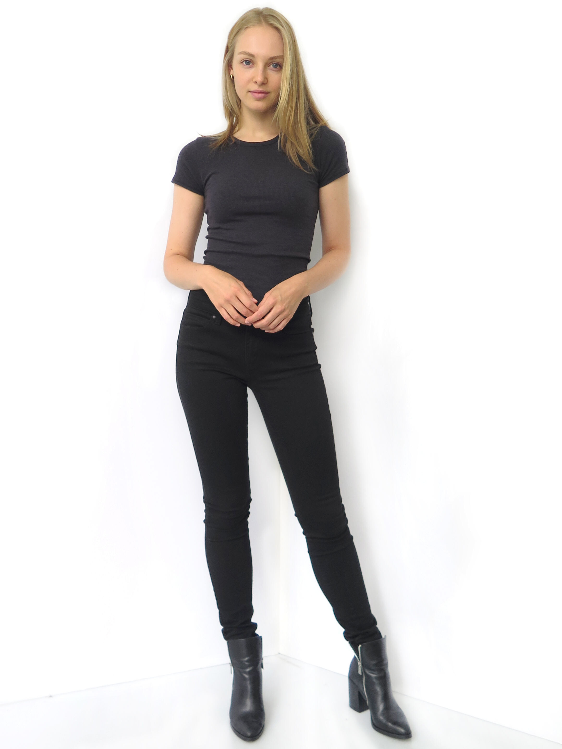 Height 5'9" Bust 31" B Waist 23" Hips 35" Shoes 8.5 Eyes Blue Hair Blonde