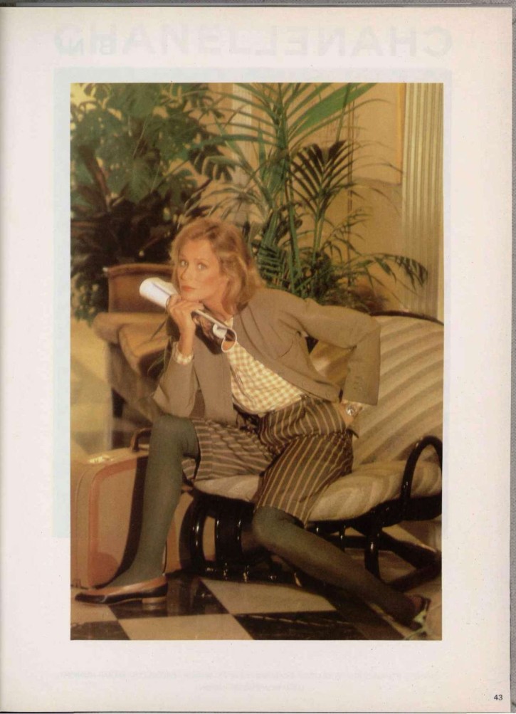 Lauren Hutton in Calvin Klein, photographed by Francesco Scavullo for American Vogue 1974.