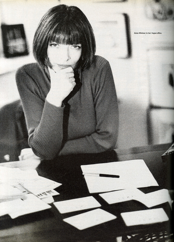 "The real Anna! On a shoot with Rico Puhlmann for Bazaar in January 1975. Anna Wintour was the fashion editor, and I was Rico’s assistant. Snapped this photo of Anna while we were location scouting"