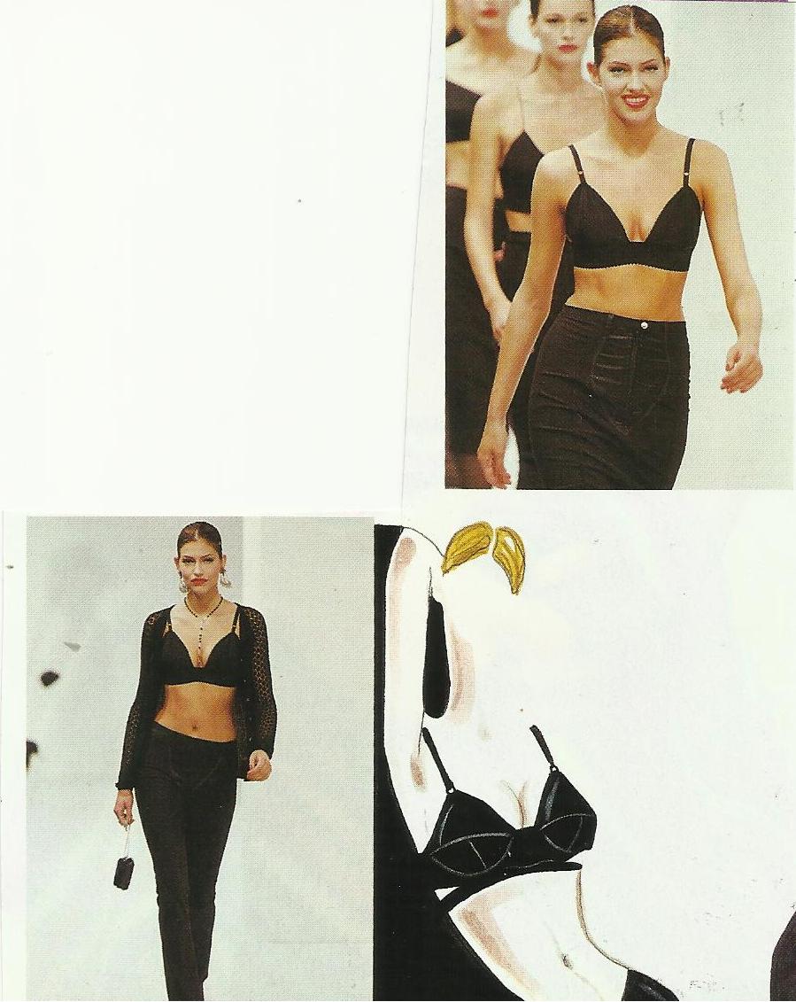 Vogue Espana January 1994: Kristina Kruse, Tricia Helfer, and Unknown. Any idea who the model directly above Tricia is?