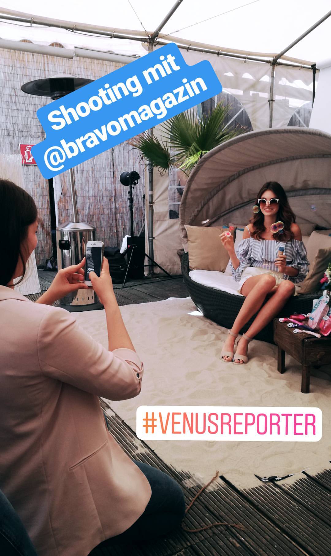 Céline backstage at the Gillette Venus shooting with Gala GER