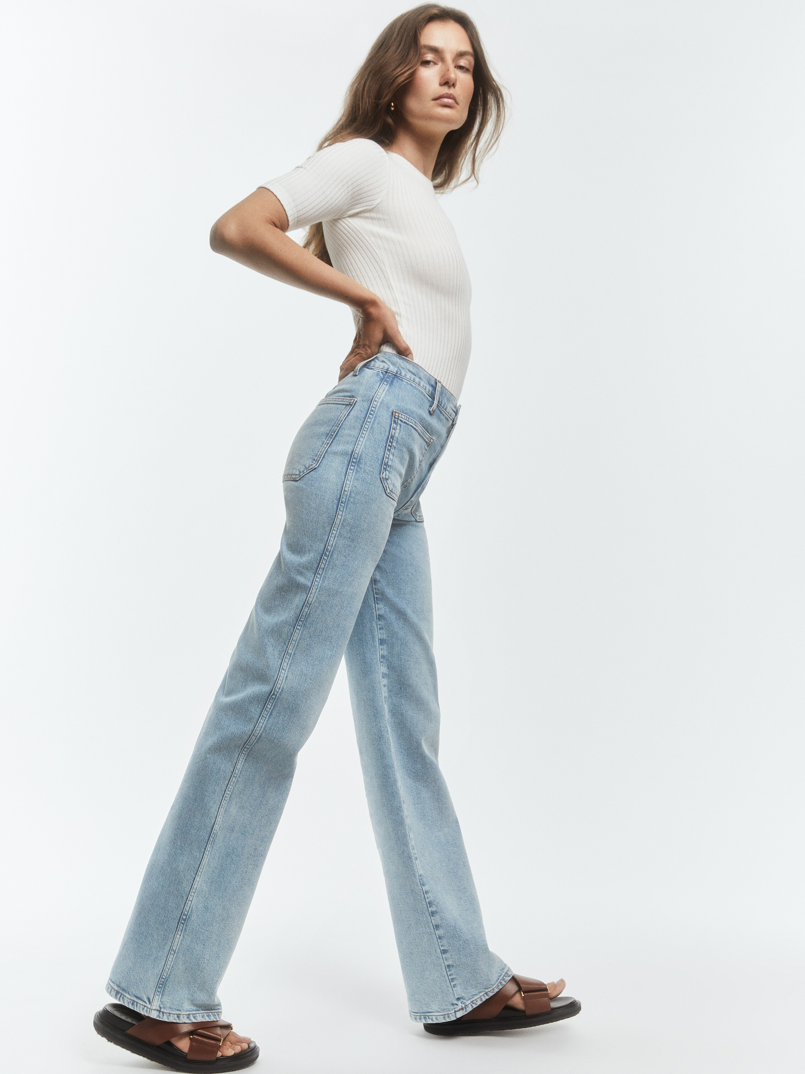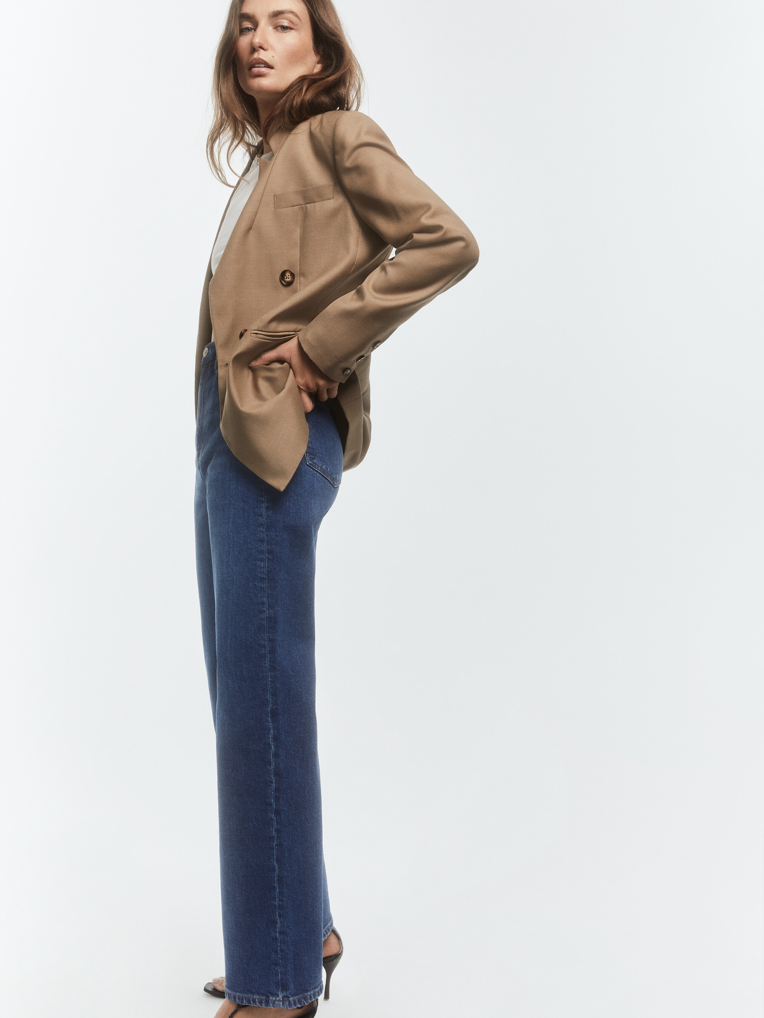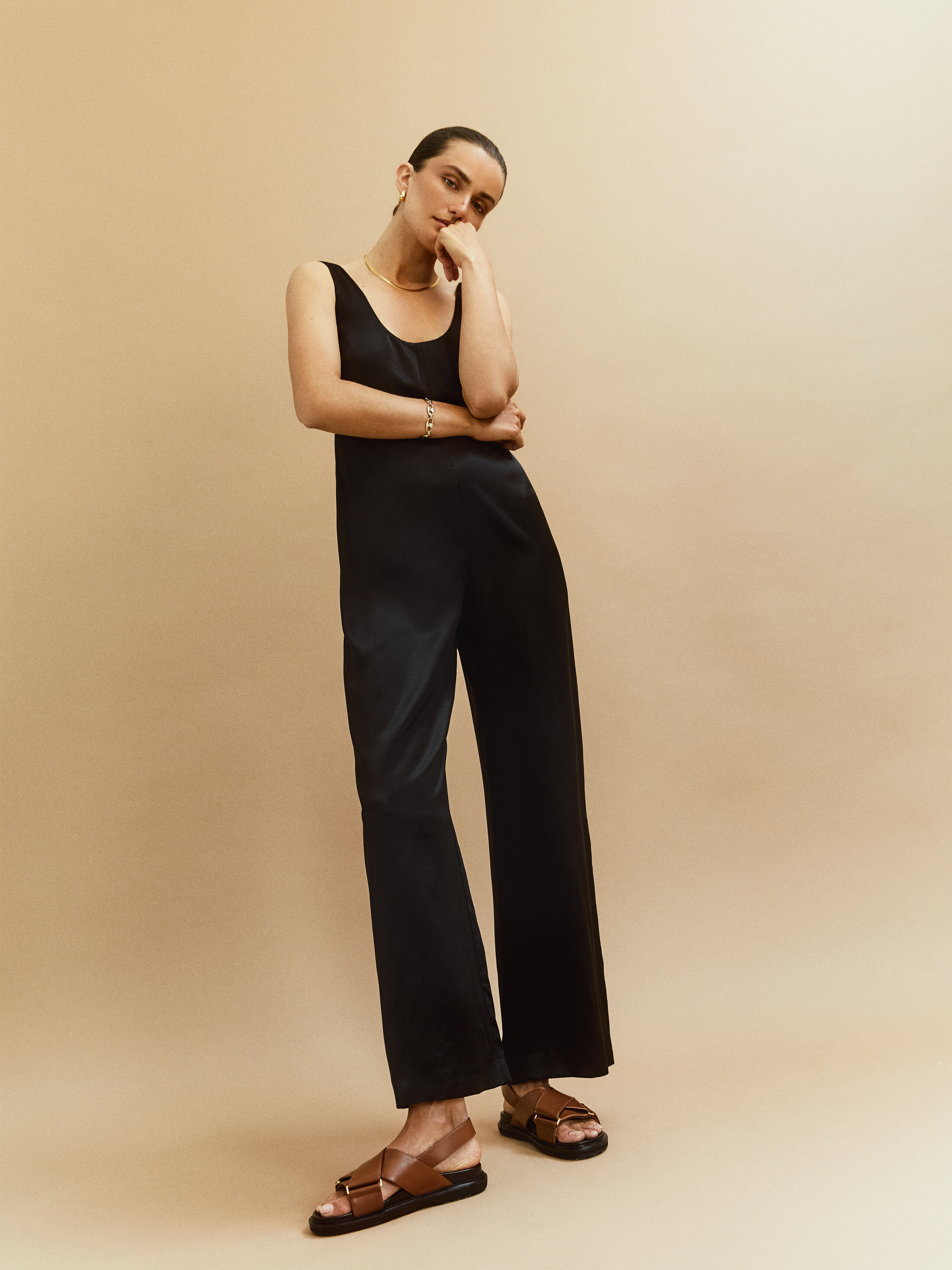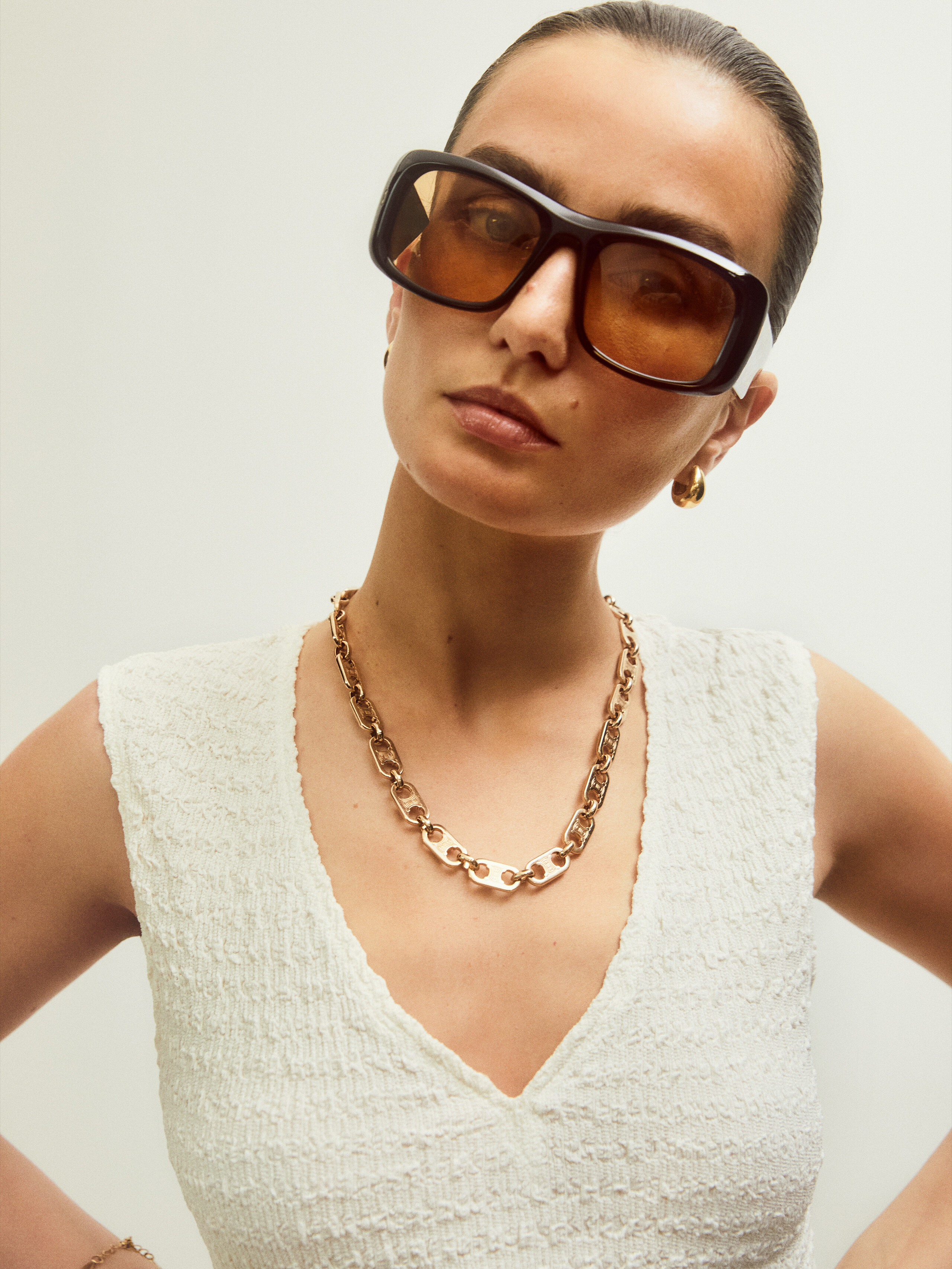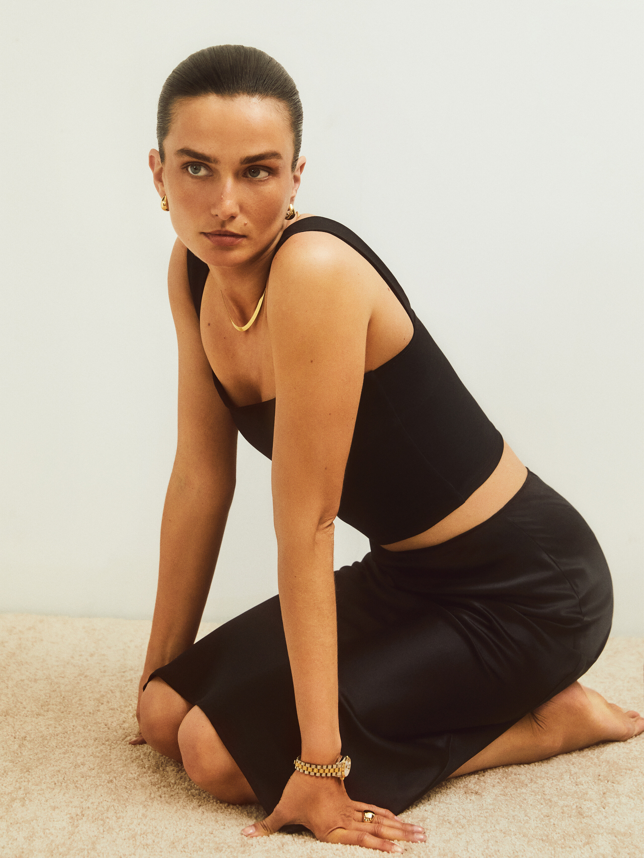 In this photo shoot, the duo’s relaxed attitudes shine through the clothing’s casual canvas. Stylist Katelyn Gray dressed the pair in dark colors, tailored suits and oversize sweaters from Prada, Louis Vuitton, The Row and Celine by Hedi Slimane, among others. “I have been wearing the same jeans and two sweaters for about three years now, so I would say I definitely [stepped] into a more polished character,” says Diaconu. —Natalia Barr
