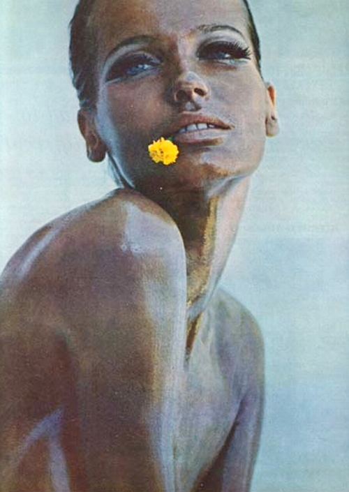 She studied art in Hamburg and then to Florence where she was discovered at age 20 by the photographer Ugo Mulas and became a full-time model. Back then tall models were not considered desirable in Paris, but there she met Eileen Ford, head of the prestigious Ford Modeling Agency. In 1961, she moved to New York City, but she did not score any booking. To make her stand out she returned to Munich and told people that she was really from Russia and changed her name to create a mysterious persona, which earned her many bookings. She had also garnered attention when she made a brief yet powerful five minute appearance in the cult film Blowup by Michelangelo Antonioni in 1966. In the same year, she did her first shoot wearing nothing but body paint, which she would continue to do for years. She once worked with Salvador Dal
