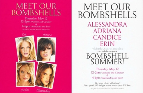 Ok so I came across this invite and I know the event this has to be old because those format and pics used were from last year, but when did candice and adriana ever have an event with just them two during the summer bombshell tour???It was the same day as the What is Sexy party. The launch had 5 models (Adriana, Ale, Miranda, Candice, Erin) but the signing just had Candice and Adriana. This was on the 12th of May last year.