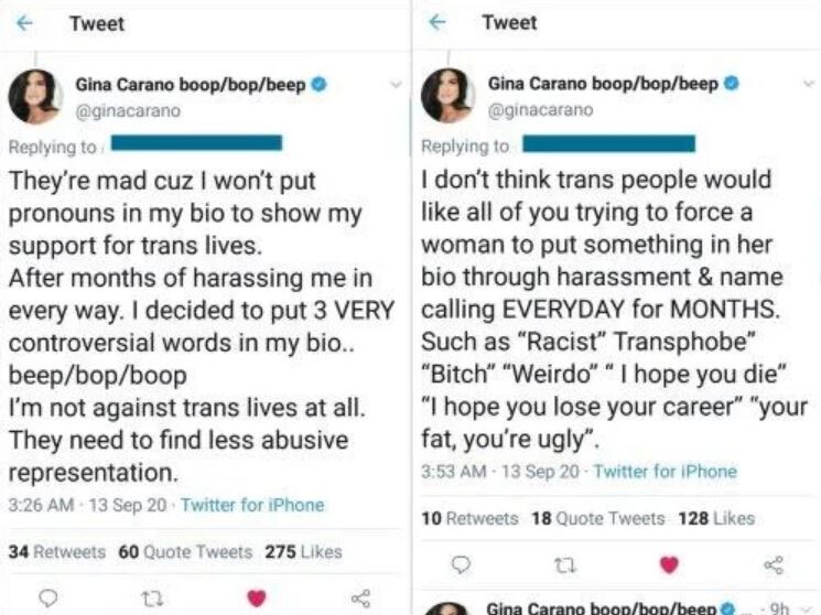 This guy wrote the same things that Gina wrote. Like Pedro Pascal, he's not going to be fired.