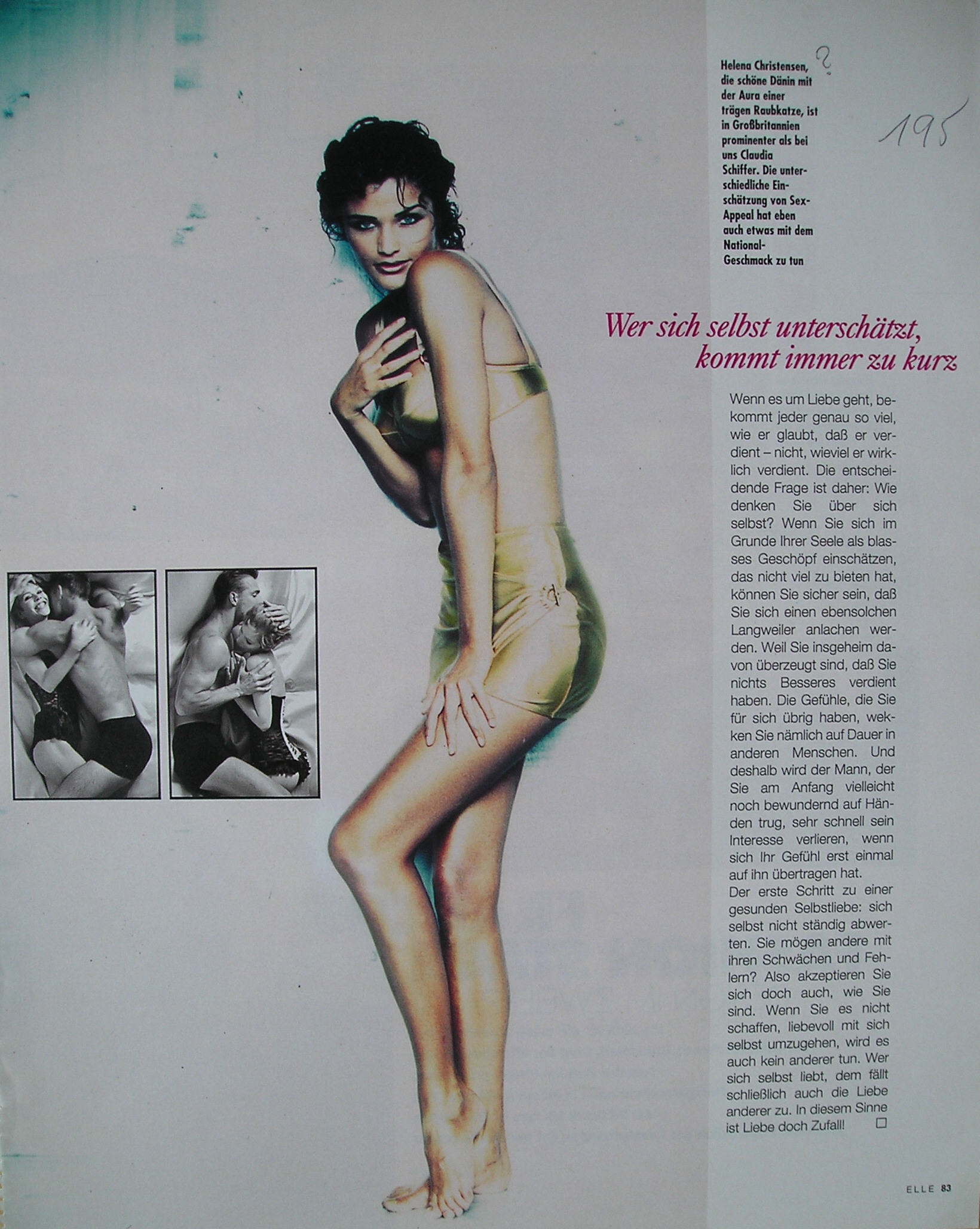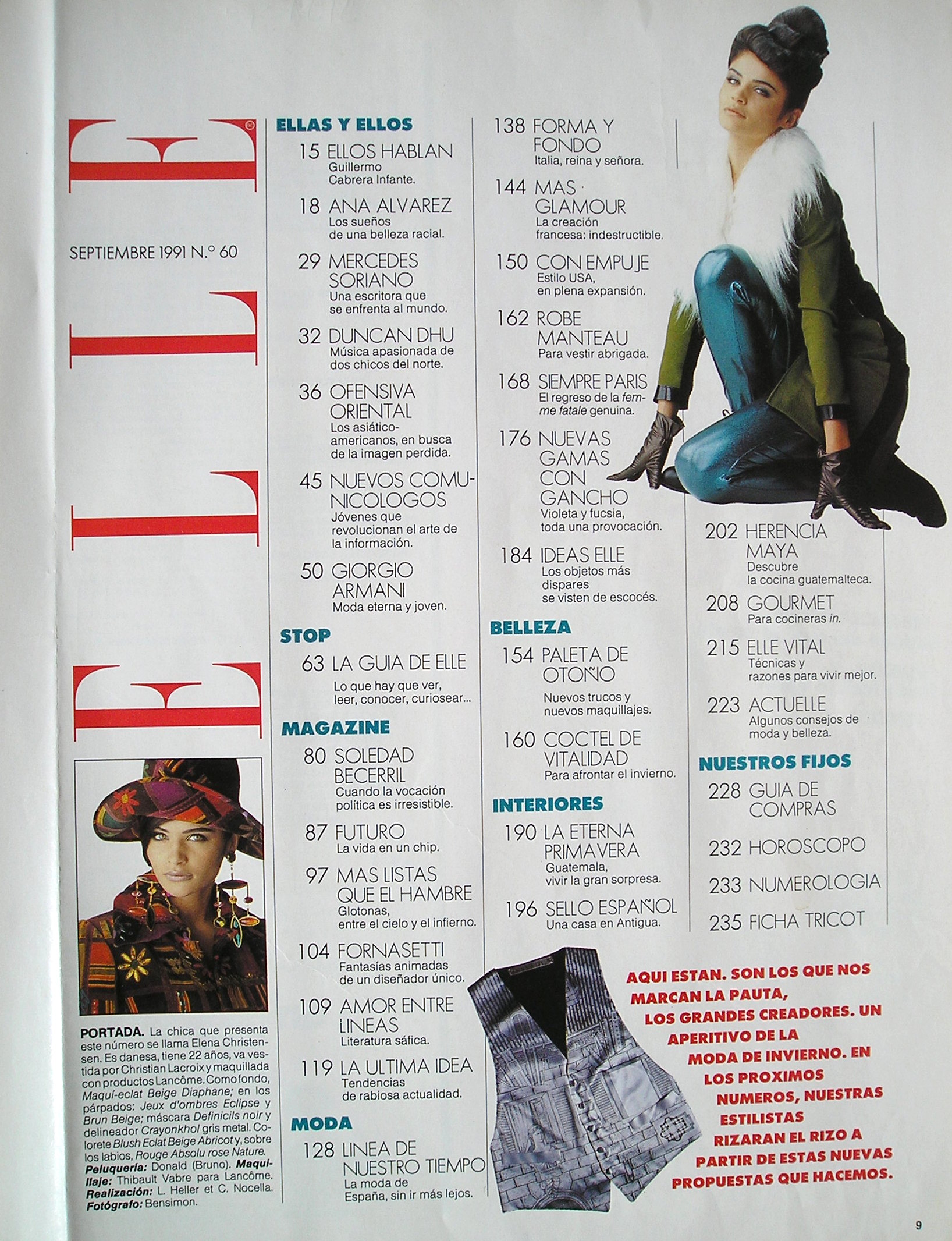 This is the cover-look of spanish ELLE September 1991 #60 which I do still have - unfortunately not longer the cover. There´s on top on this contents page also a picture of Helena coming from this layout you´ve posted here. So seems this September 1991 spanish ELLE issue also had an editorial of her inside. But I don´t have it.