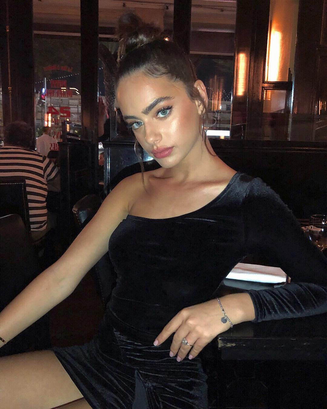 She's looking cool with the dark hair and colours.