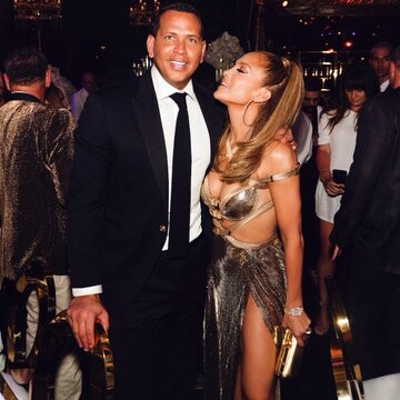 arrives with Alex Rodriguez for their kids' graduations in Miami
