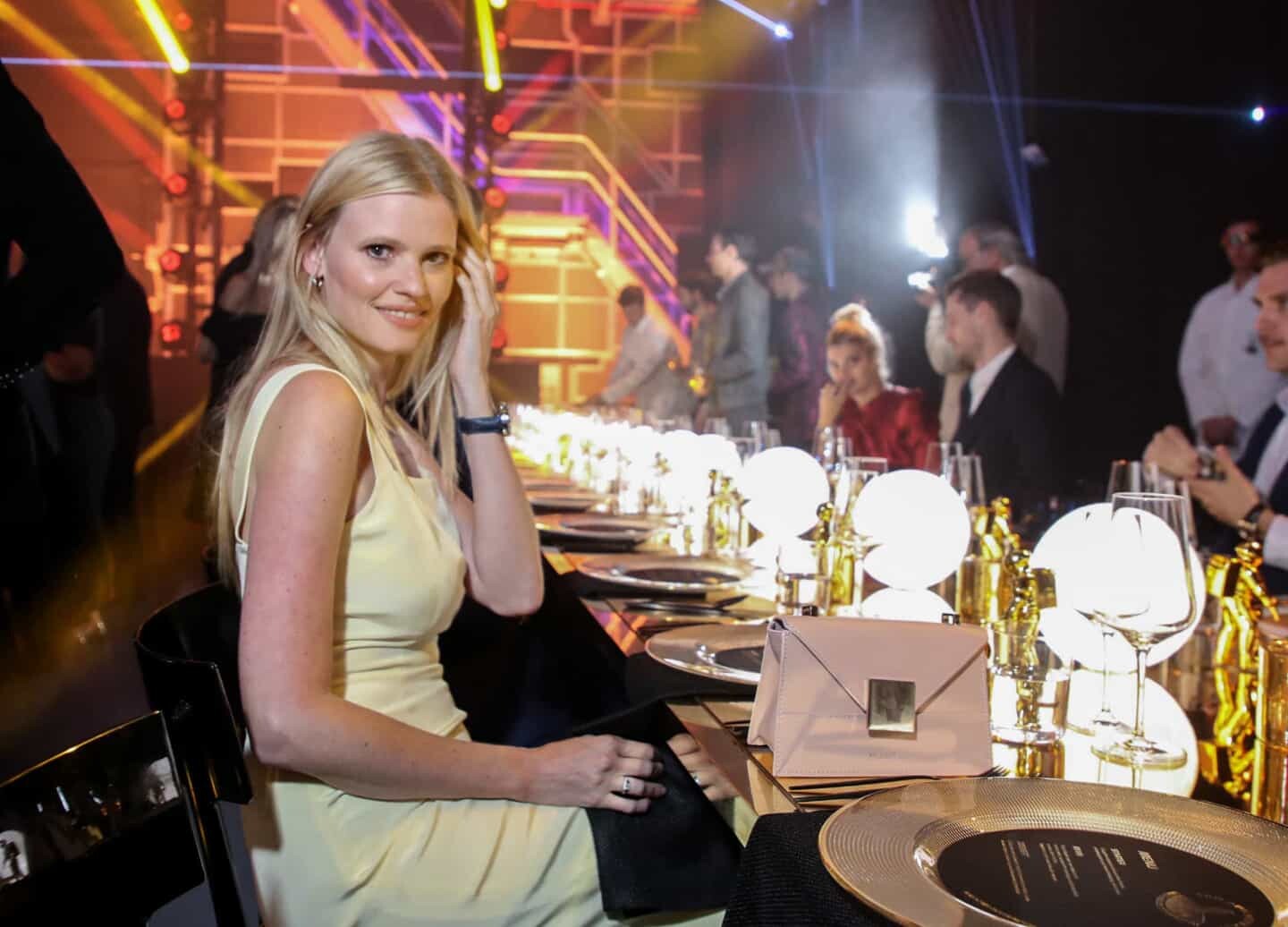 Lara Stone attends an OMEGA dinner celebrating the 50th anniversary of the Moon Landing at Television Centre in London, England. July 11, 2019.