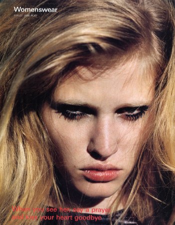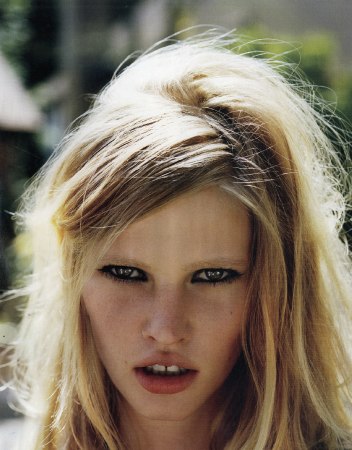 Lara Stone sits with bleached eyebrows lowered to eye level, cheeks sucked in and grunts in her direct Dutch drawl, "will you stop asking me questions about my tits?" "Oops sorry, but the world seems rather obsessed with them..." ![]()