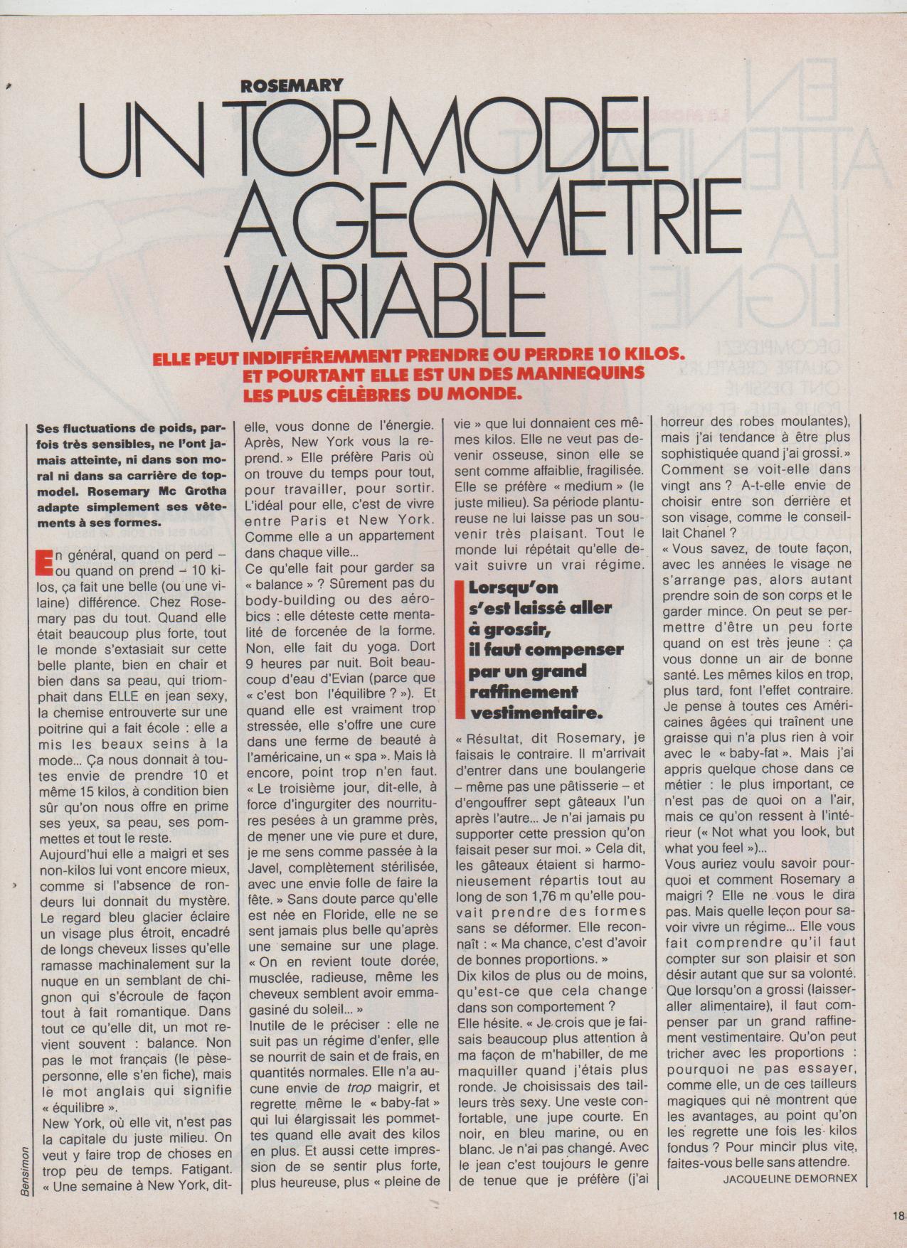 Thank you so much for your amazing contribution to this thread, pierrehc. Rosemary has always been one of my favourite models and I started buying fashion magazines mainly because of her and also Inès de la Fressange. The scans you have made are impeccable and it's wonderful to see how beautiful Rosemary has always been. Thank you very, very much.