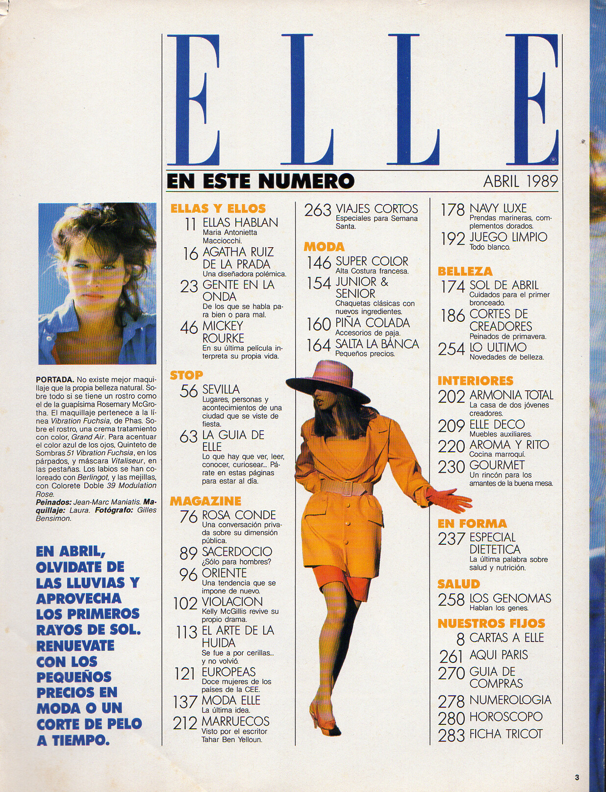 cover + cover-look ELLE Spain April 1989 #31 by Gilles Bensimon - also showing Roberta Chirko