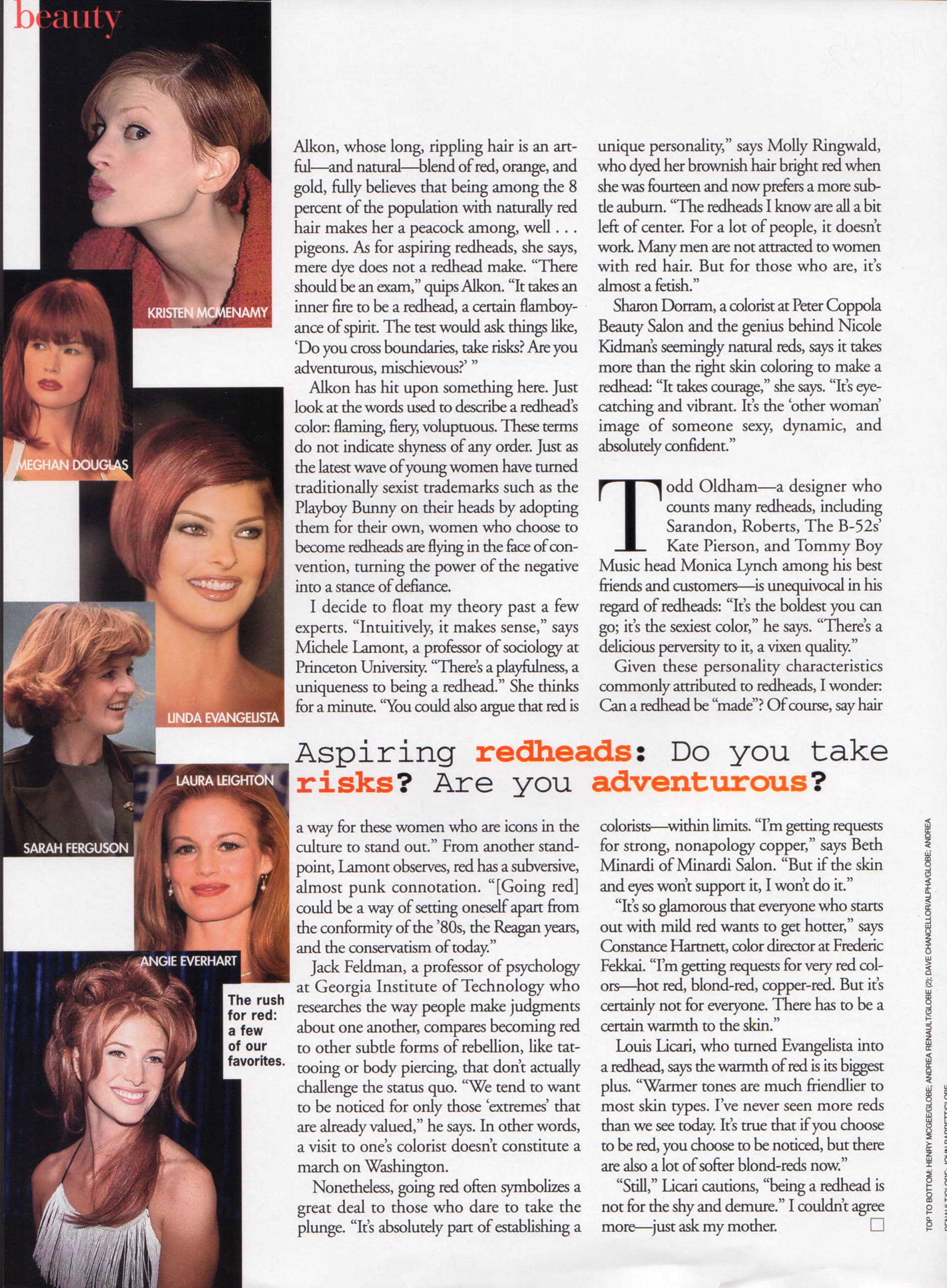 "GOLDEN GIRLS" - VOGUE Germany March 1995 - also showing Daryl Hannah, Marilyn Monroe, Yasmeen Ghauri, Shalom Harlow