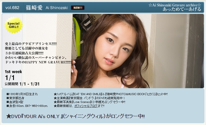 Ai Shinozaki (born February 26, 1992) is a Japanese gravure idol, singer, and a member of "AeLL.", a musical idol group.