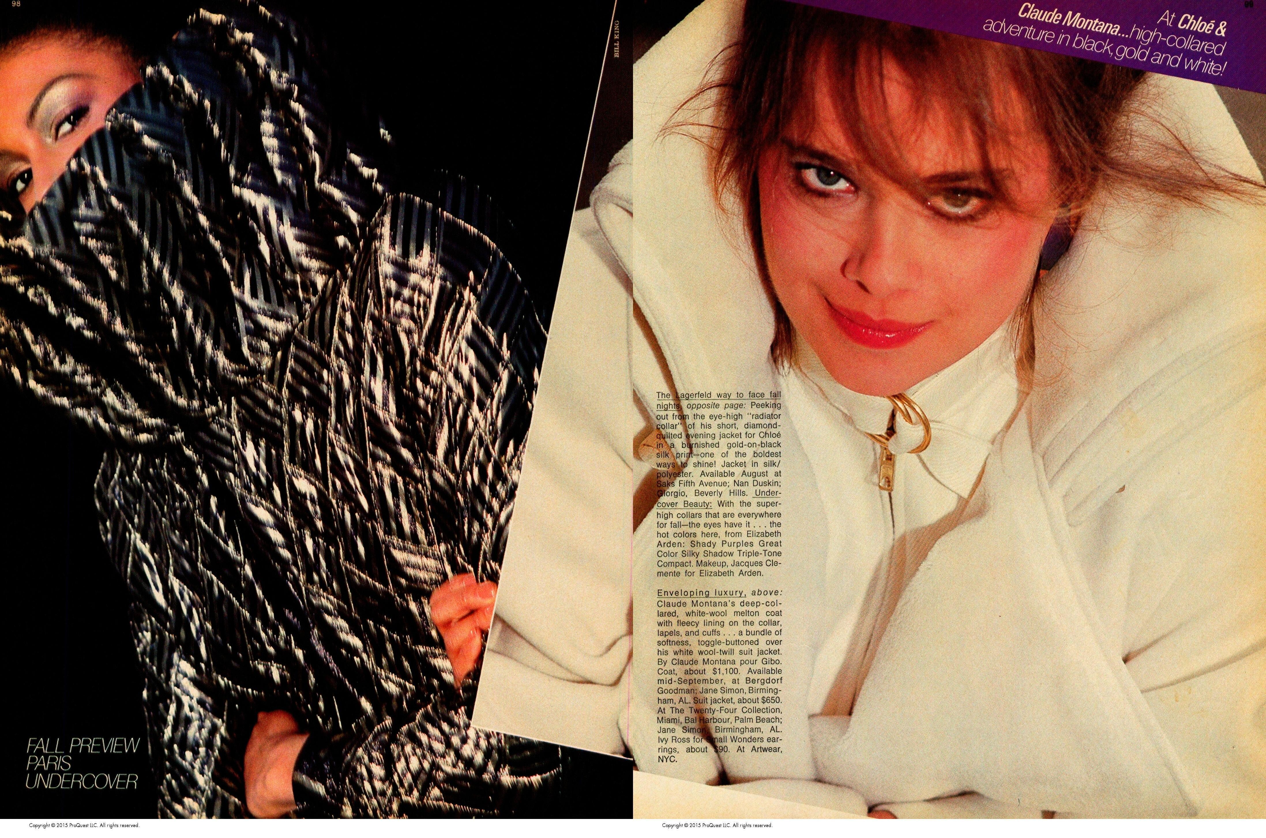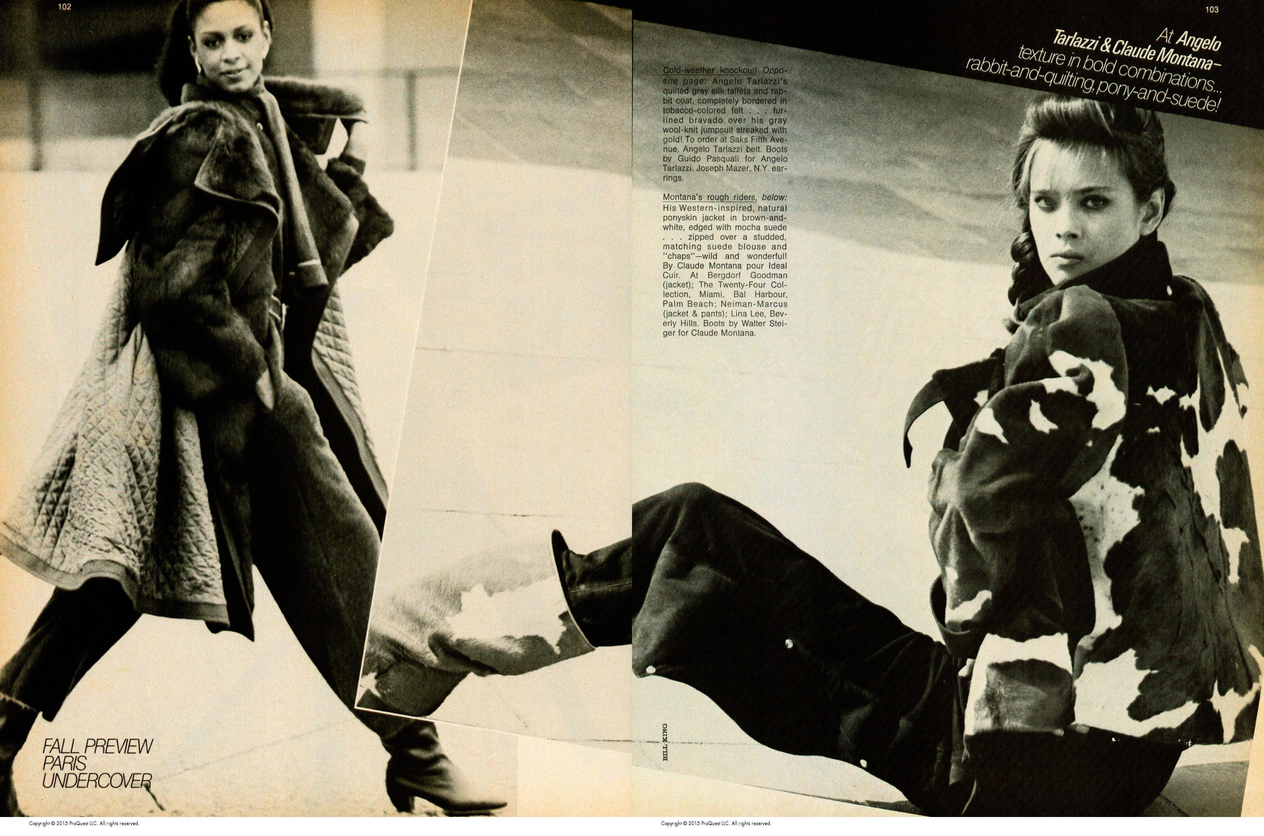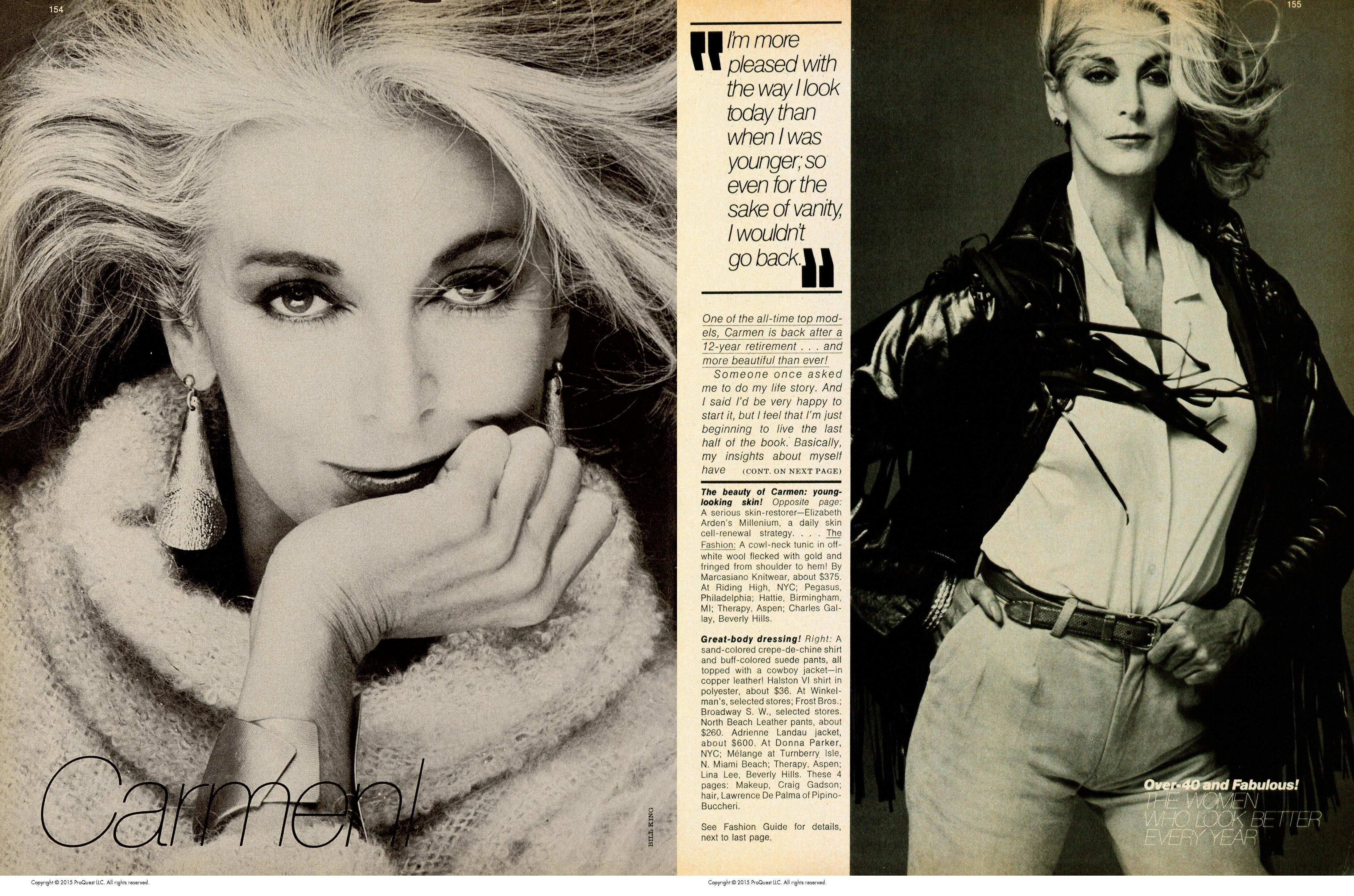 Models: Karen Graham, Dayle Haddon, Rene Russo, Ornella Muti, Tina Chow, Adelle Lutz, Lauren Hutton, Iman Abdulmajid, Jane Seymour & Brooke Shields