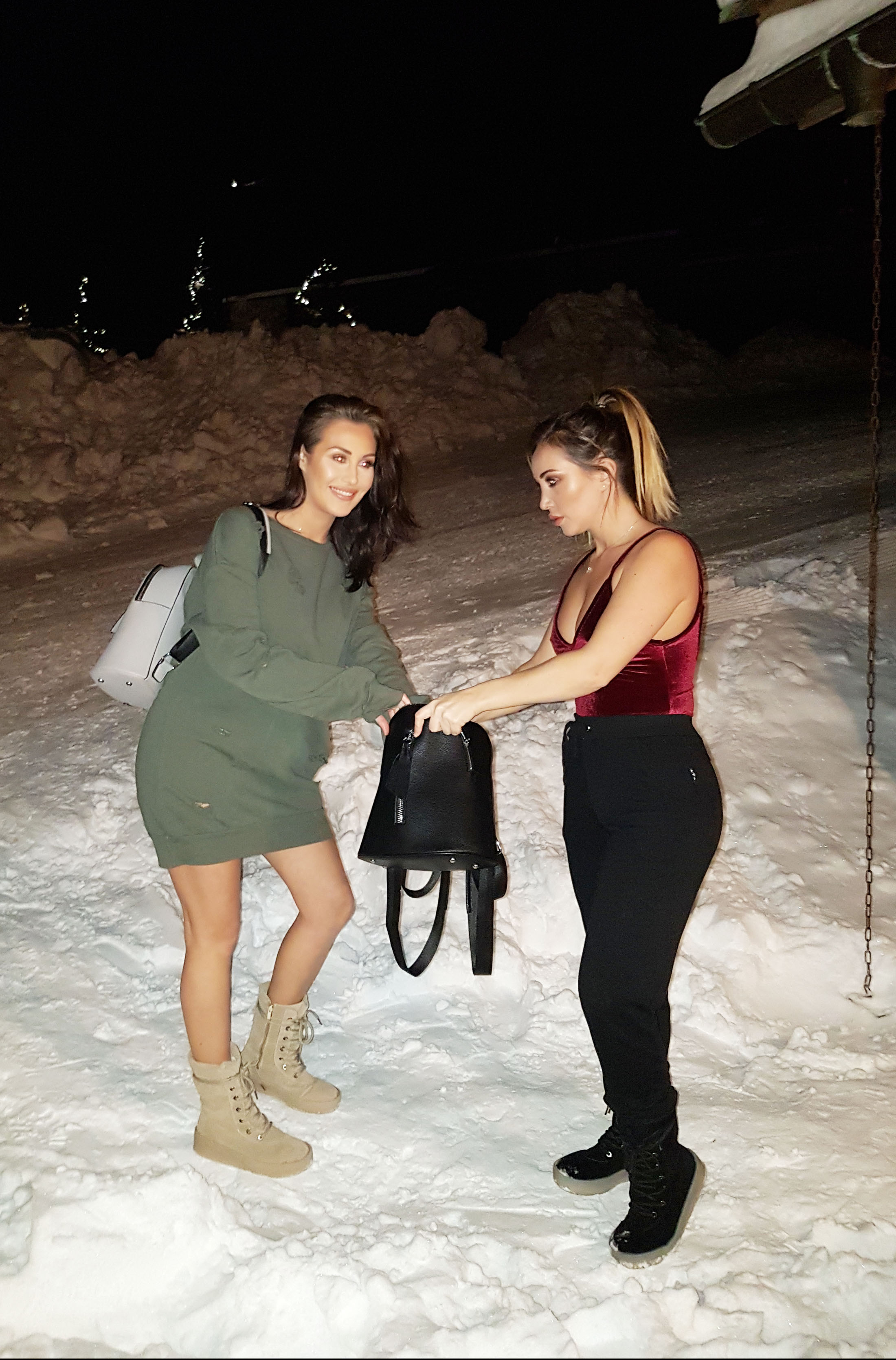 Lauryn and Chloe Goodman leaving the L'Aigle des Neiges hotel in Val d'isere, France 20.01.2017