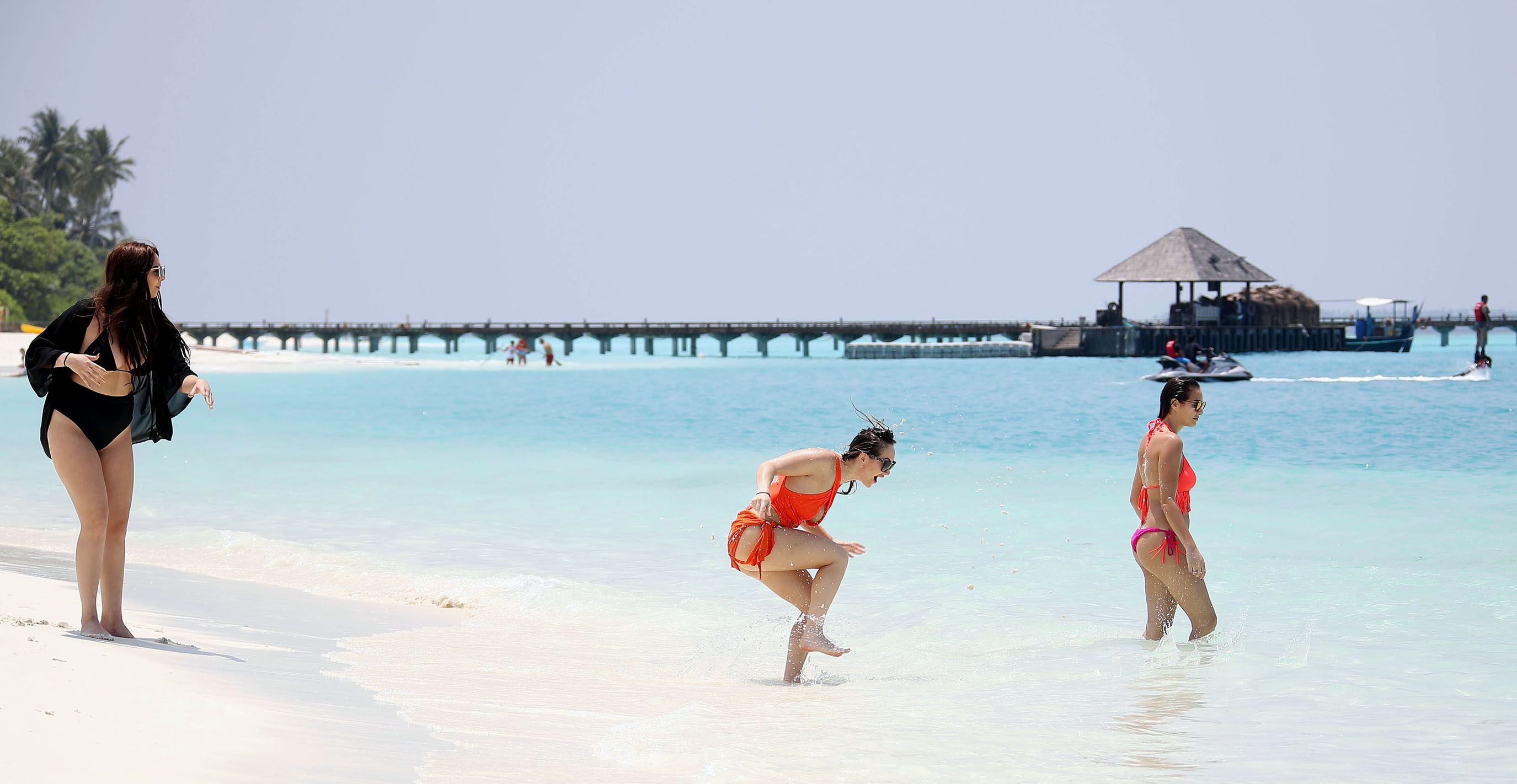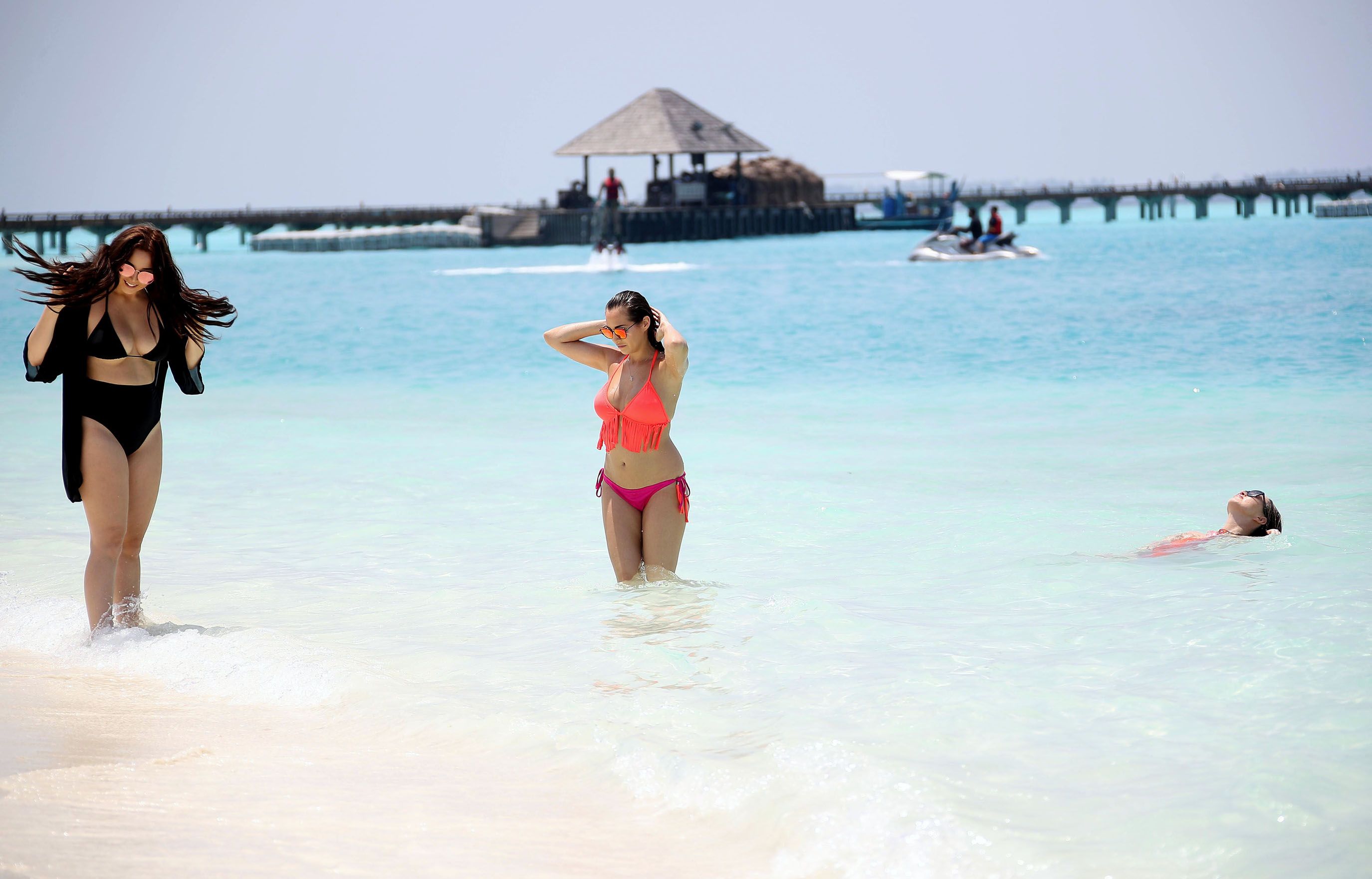 Chloe Goodman, Lauryn Goodman & Amelia Goodman at the beach soaking up the sun in Maldives 28.03.2017