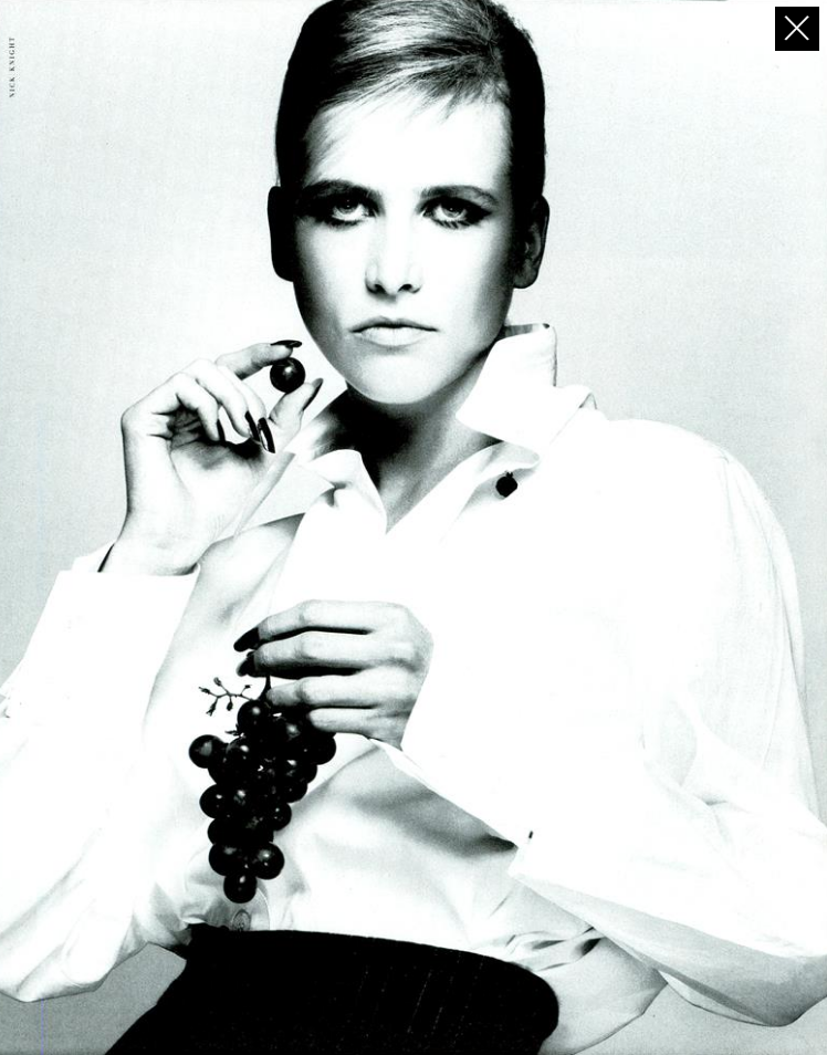 QuoteAmanda Cazalet achieved supermodel status in the 90's working alongside Helena Christensen, Kristen McMenamy, And Christy Turlington. Her androgynous looks made her the supermodel of choice and muse for Jean Paul Gaultier, Ellen von Unwerth, Katherine Hamnett, Betty Jackson and super photographers, Nick Knight and Peter Lindbergh. A regular contributor to BLITZ magazine, Controversially Amanda appeared kissing Madonna in 'Justify My Love' music video and also in her book 'Sex'. Amanda featured on the cover of Roxy Music's 'Heart Still Beating' album and in Tina Turner's music video 'Girls' alongside Naomi Campbell whom she introduced to Azzedine Alana, who is regarded as key in launching Campbell's career.