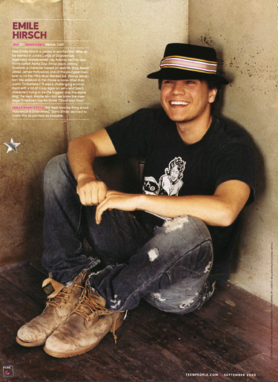 I love love love Emile Hirsch! Everything I've ever seen him in is amazing. It was even hard to dislike him in Alpha Dog. Unfortunatley there are so little pictures of him online. I've looked and looked to no avail. I'd love to see some new ones if anyone has them.