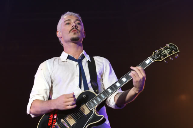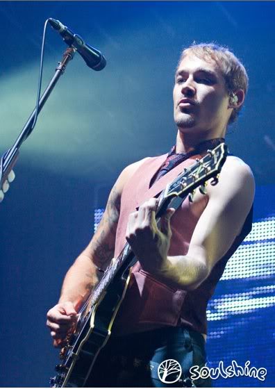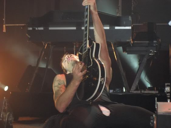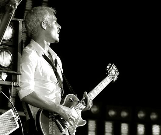 Currently on tour, Johns is using a black '72 Fender Telecaster Deluxe for all songs in standard tuning, such as "Young Modern Station" and "Ana's Song (Open Fire)", a yellow '72 Fender Telecaster Deluxe for all songs in standard which require a capo, such as "Those Thieving Birds/Strange Behaviour" and "If You Keep Losing Sleep", a green Paul Reed Smith Custom 24 in dropped-D tuning for "The Door", a Paul Reed Smith Standard McCarty in dropped-B tuning for "the Lever", a black Gibson Les Paul Custom in Open C# tuning for "Emotion Sickness", "Without You", "Israel's Son" and "Freak", a Rickenbacker 330/12 semi-hollow 12-string in standard tuning for "The Greatest View" and a Maton EM325C semi-acoustic with a sparkle finish in an unusual tuning of F-C-G-D-G-D, used for songs such "Tuna In The Brine" and "Luv Your Life". Johns also uses a Gibson SG Heritage tuned half a step down for "Straight Lines".