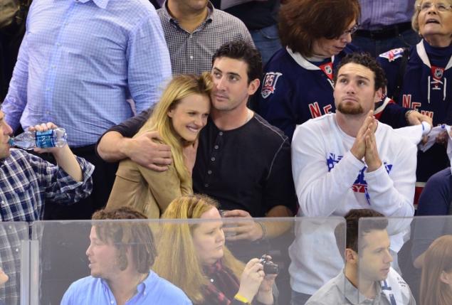 Most recently, they were seen having dinner together at NYC eatery Willow Road, and were photographed attending the N.Y. Rangers game together on Thursday, May 23. In the sweet pic, Harvey is seen giving the 5'9 blonde bombshell a tender kiss on her forehead as she smiles, her hand rested comfortably on his chest.