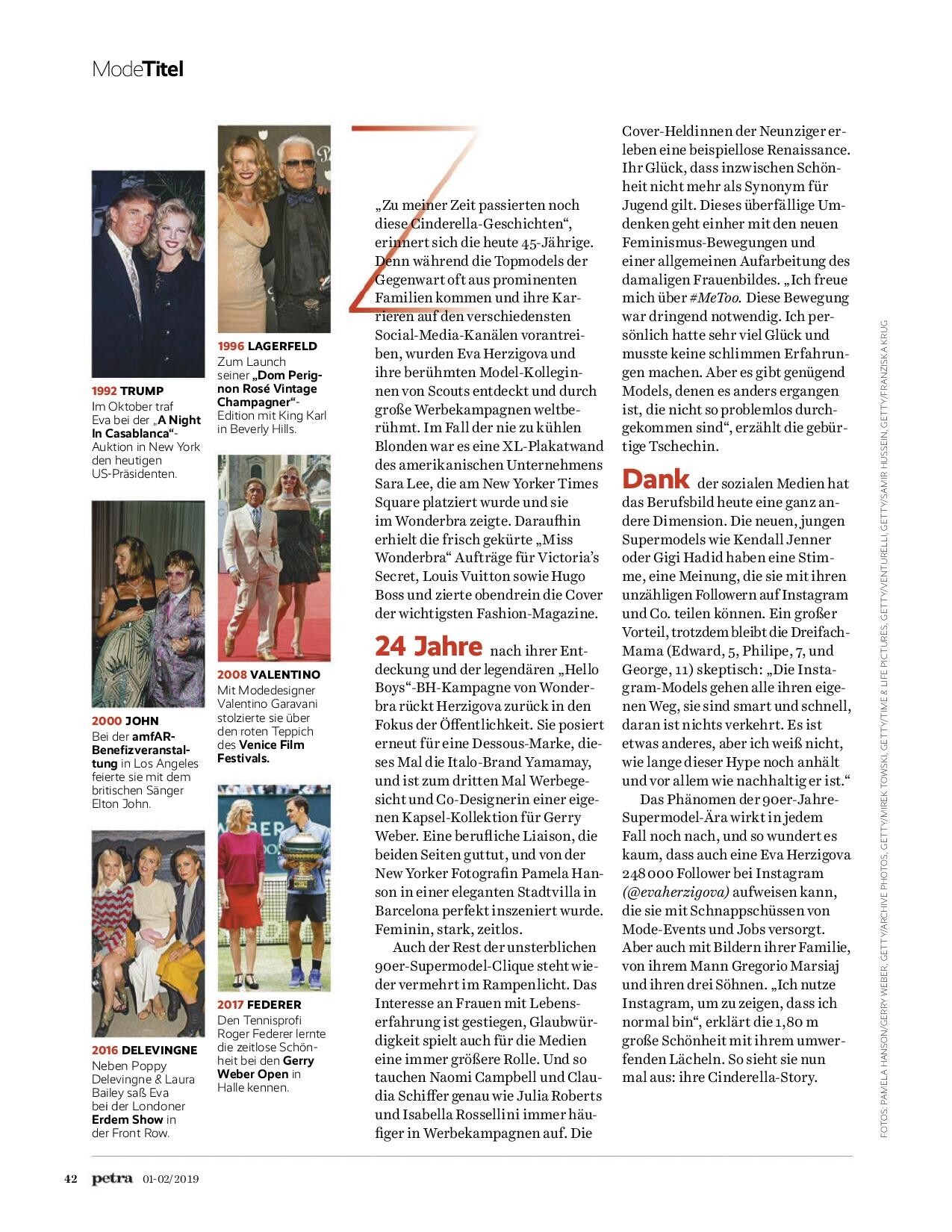 Magazine: Petra Germany (January/February 2019) Title: Eva Photographer: Pamela Hanson Model: Eva Herzigova