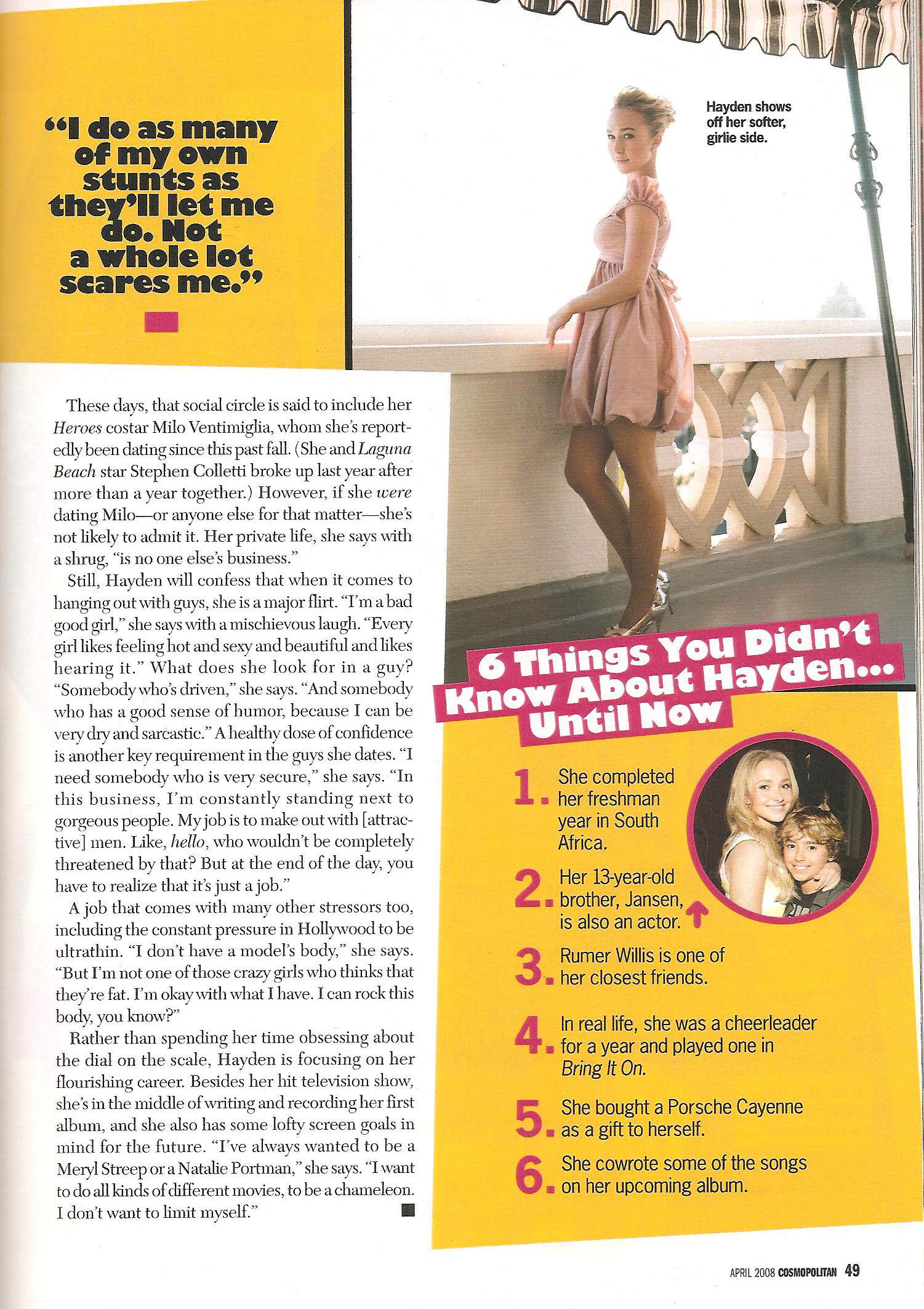 She is on the cover of the April Cosmopolitan.