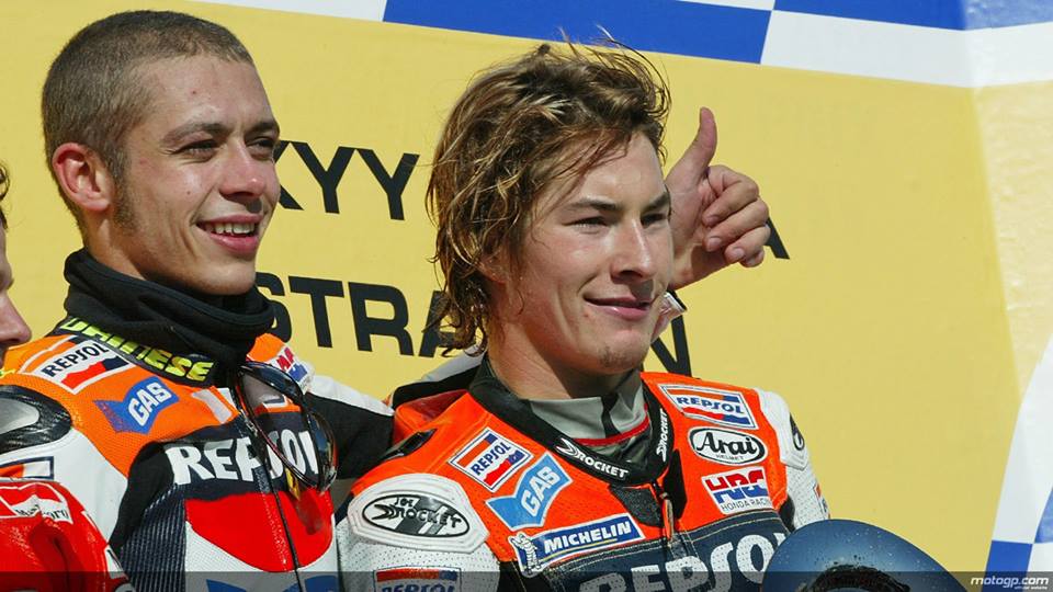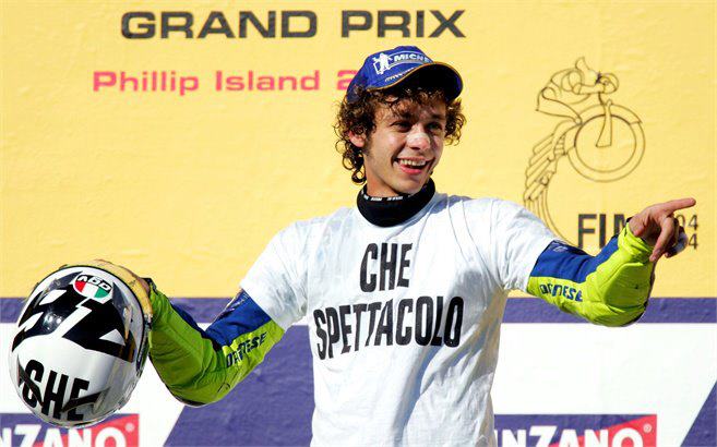 Following his father, Graziano Rossi, Rossi started racing in Grand Prix in 1996 for Aprilia in the 125cc category and won his first World Championship the following year. From there, he moved up to the 250cc category with Aprilia and won the 250cc World Championship in 1999. He won the 500cc World Championship with Honda in 2001, the MotoGP World Championships (also with Honda) in 2002 and 2003, and continued his streak of back-to-back championships by winning the 2004 and 2005 titles after leaving Honda to join Yamaha, before regaining the title in 2008 and retaining it in 2009.[3]