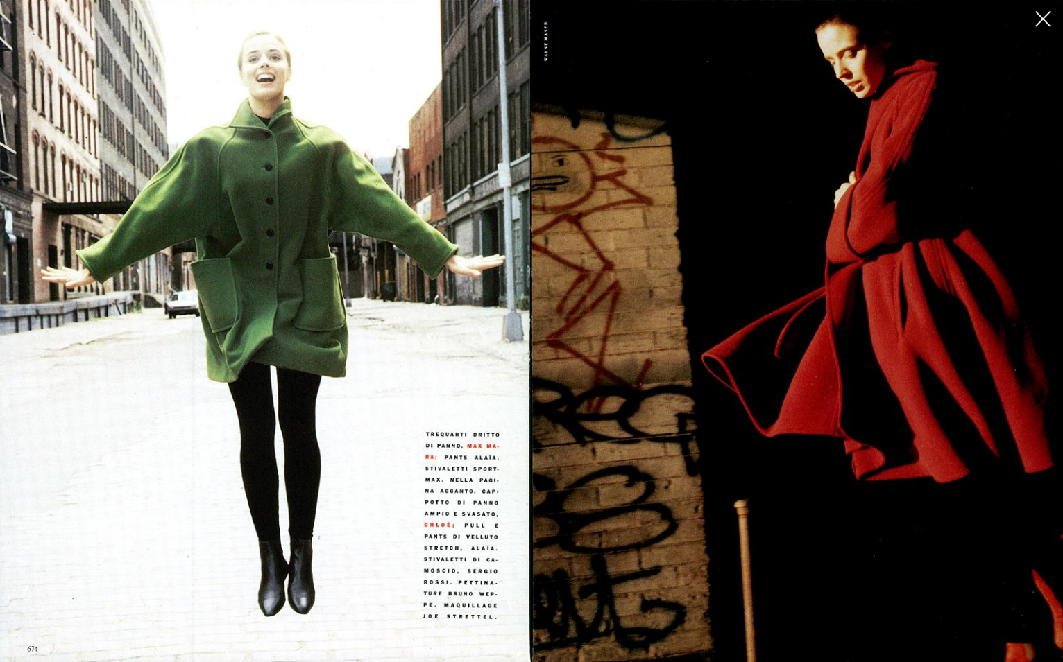 After Anna Wintour took over American Vogue, “it just didn’t seem like fun anymore and I started working with [VogueItalia art director] Fabien Baron,” Wayne Maser. “Fabien was much more fun to work with.” When Baron left that year to return to New York, his plan was to open an independent design studio with Gambaccini, but within days, he was offered the top art job at Interview, once Andy Warhol’s magazine. Baron’s tenure there was short, but he gave Maser portrait assignments that the photographer found much more to his liking. “Wayne and Fabien were a perfect pairing,” says Lara Harris.