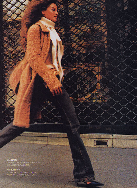 US Glamour September 2000 "Good Gold!" Model: Aurelie Claudel Photographer: Wayne Maser Stylist: Jayne Pickering Hair: Roque Make-up: Lamar Fulllove