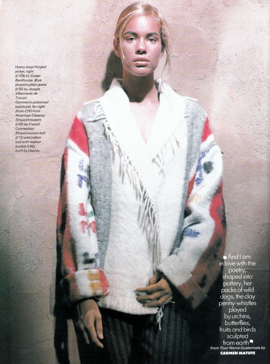 UK Elle April 1993 Go With The Flow Photographer: Robert Erdmann Model: Claudia Mason Fashion Editor: Anna Cockburn Hair: Ray Allington Makeup: Diane Kendal
