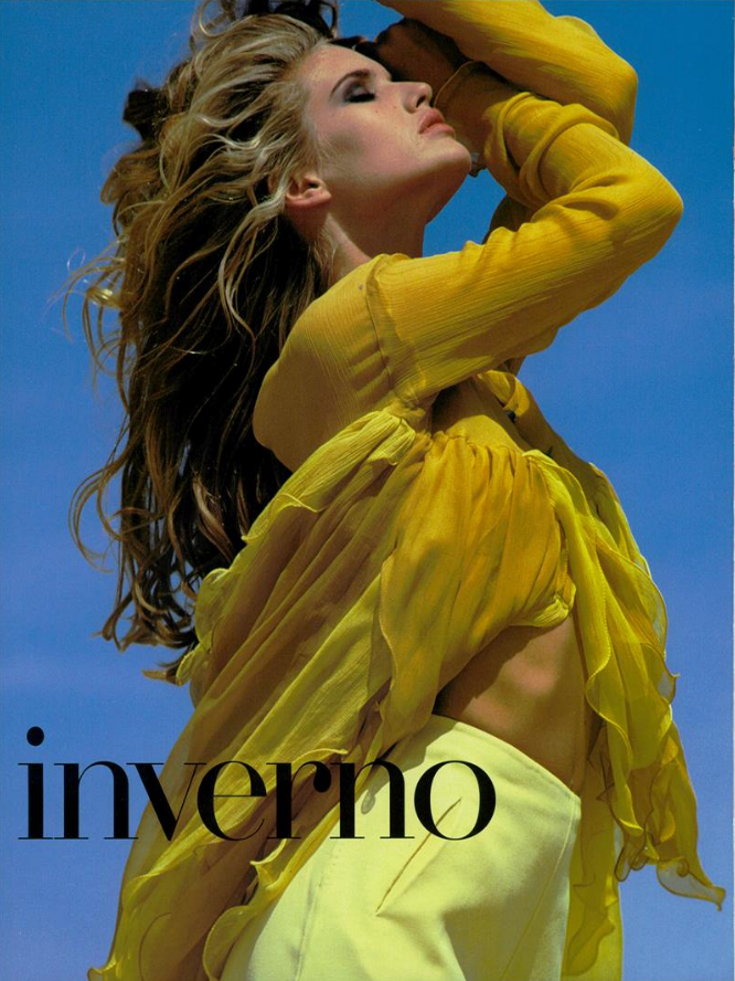 Model: Linda Evangelista Photographer: Patrick Demarchelier Stylist: Carlyne Cerf de Dudzeele Hair: Oribe Makeup: Mary Greenwell