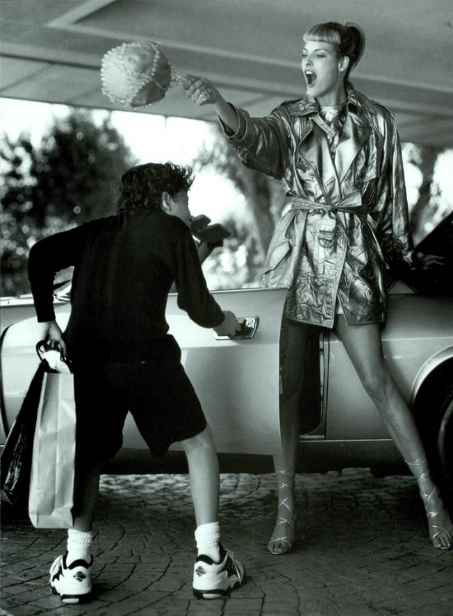 Model & Designer: Linda Evangelista & Isaac Mizrahi