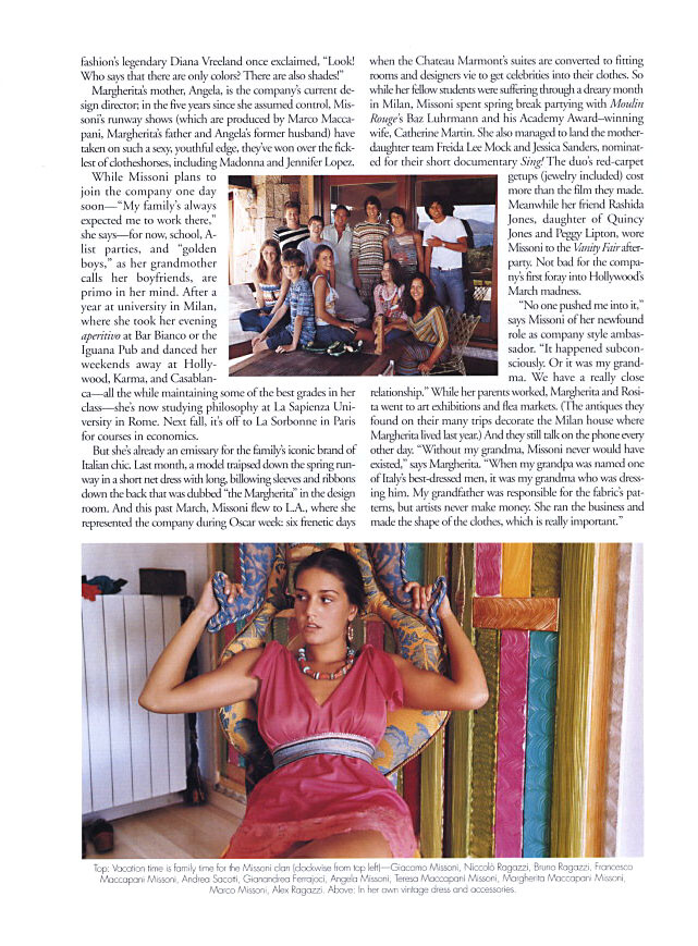 Magazine: Elle US (November 2002) Title: Ciao, Bella Photographer: Gilles Bensimon Model: Margherita Missoni
