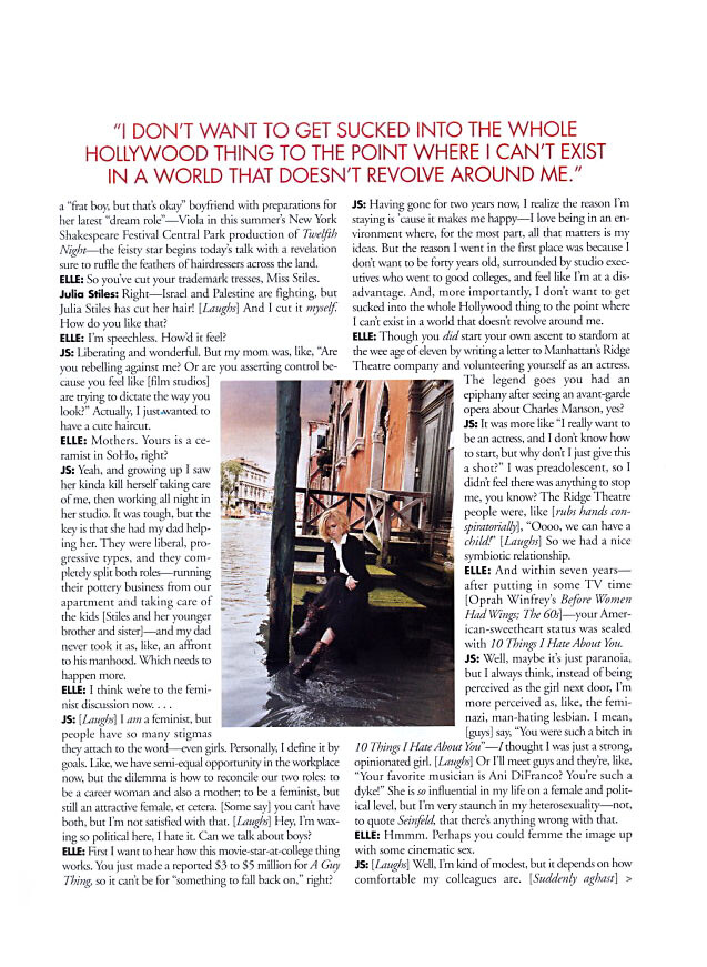 Magazine: Elle US (August 2002) Title: Elements Of Stiles Photographer: Gilles Bensimon Model: Julia Stiles