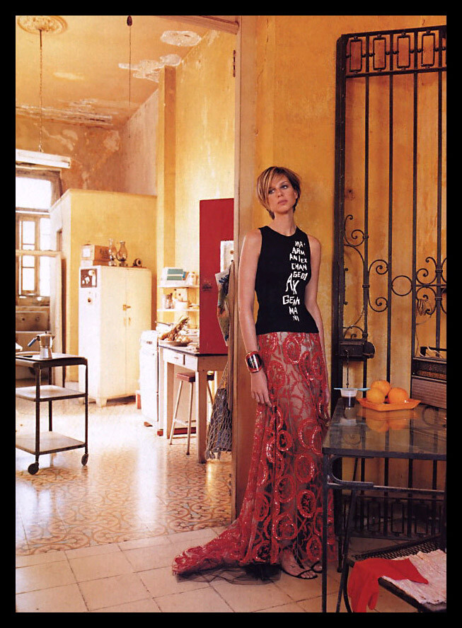 Magazine: Elle US (April 2002) Title: Latin Quarter Photographer: Gilles Bensimon Model: Camilla Thorsson