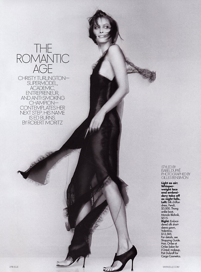 Magazine: Elle US (March 2002) Title: The Romantic Age Photographer: Gilles Bensimon Model: Christy Turlington
