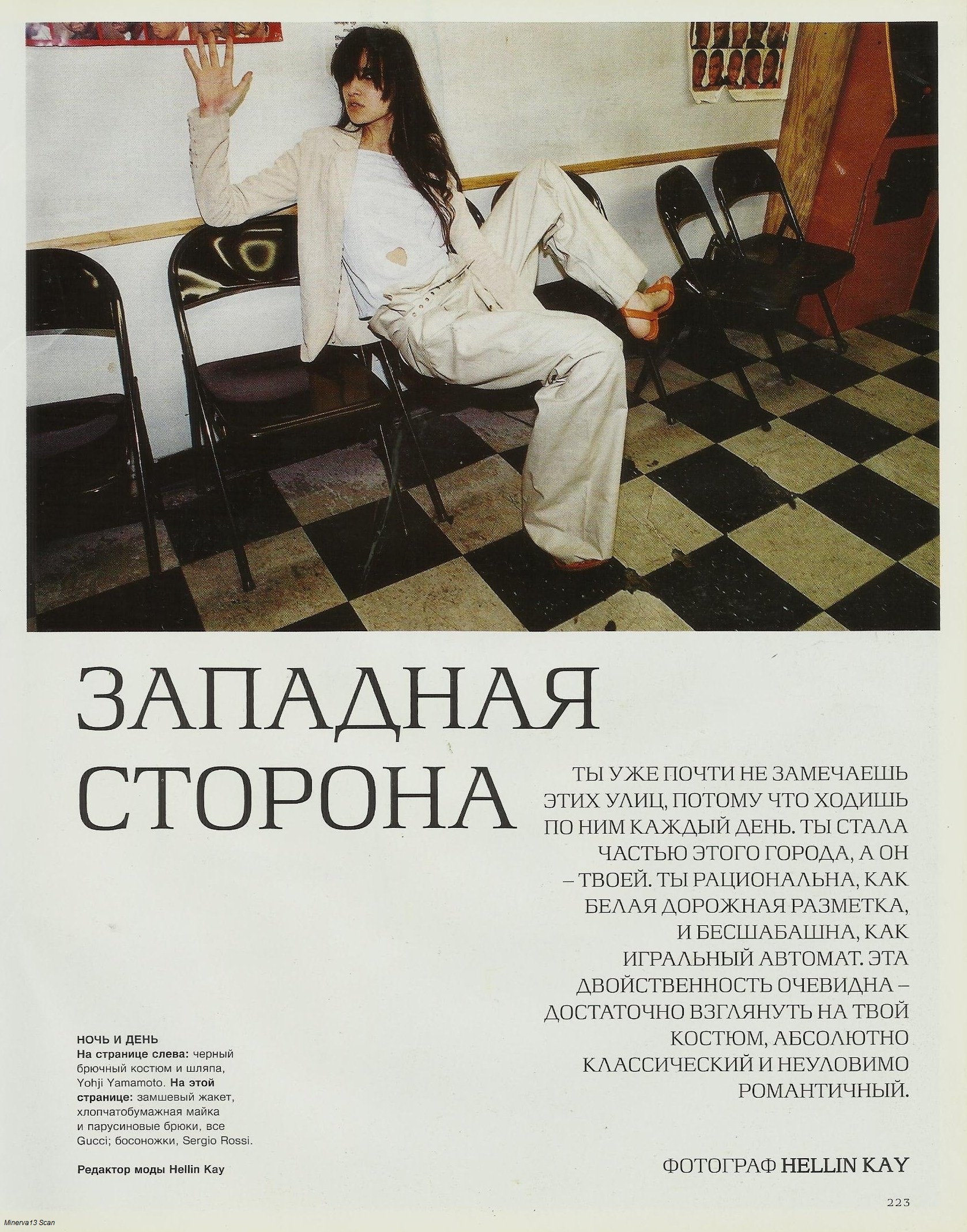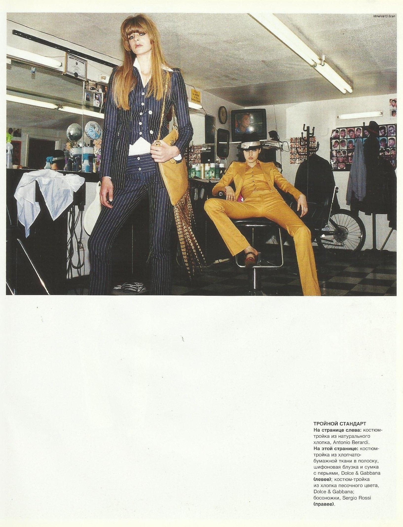Harper's Bazaar Russia March 2002 ''The West Side'' Photo/Stylist: Hellin Kay Models: Luka Sylwester & Diana (Last name?) Hair: Frankie Foye Makeup: Elie Maalouff Scanned by me