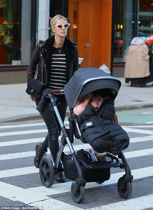 lmo’s unmistakable squawk floats out of the nursery and into the hallway of the downtown penthouse that year-and-a-half-old Lily Grace shares with her parents, James and Nicky Hilton Rothschild, new sister Teddy Marilyn (born this past December), and two cats, Mac and Cheese. With the drunken-sailor stagger of one who has just recently learned to walk, the toddler topples into her mother’s lap, revealing pink-heart D. Porthault bloomers that match the bedding on her cream crib.