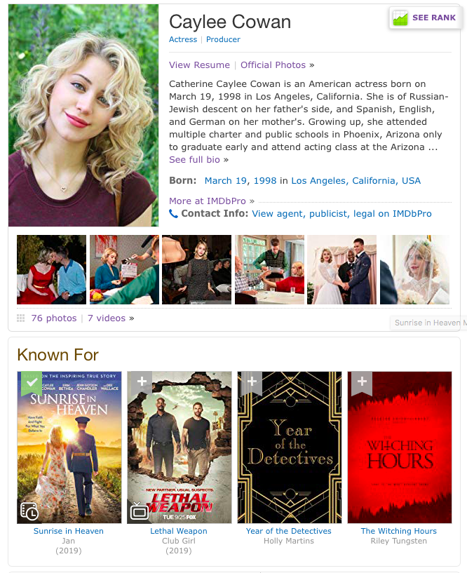 She's born in 1998 in LA and I suppose her goal is to be an actress.