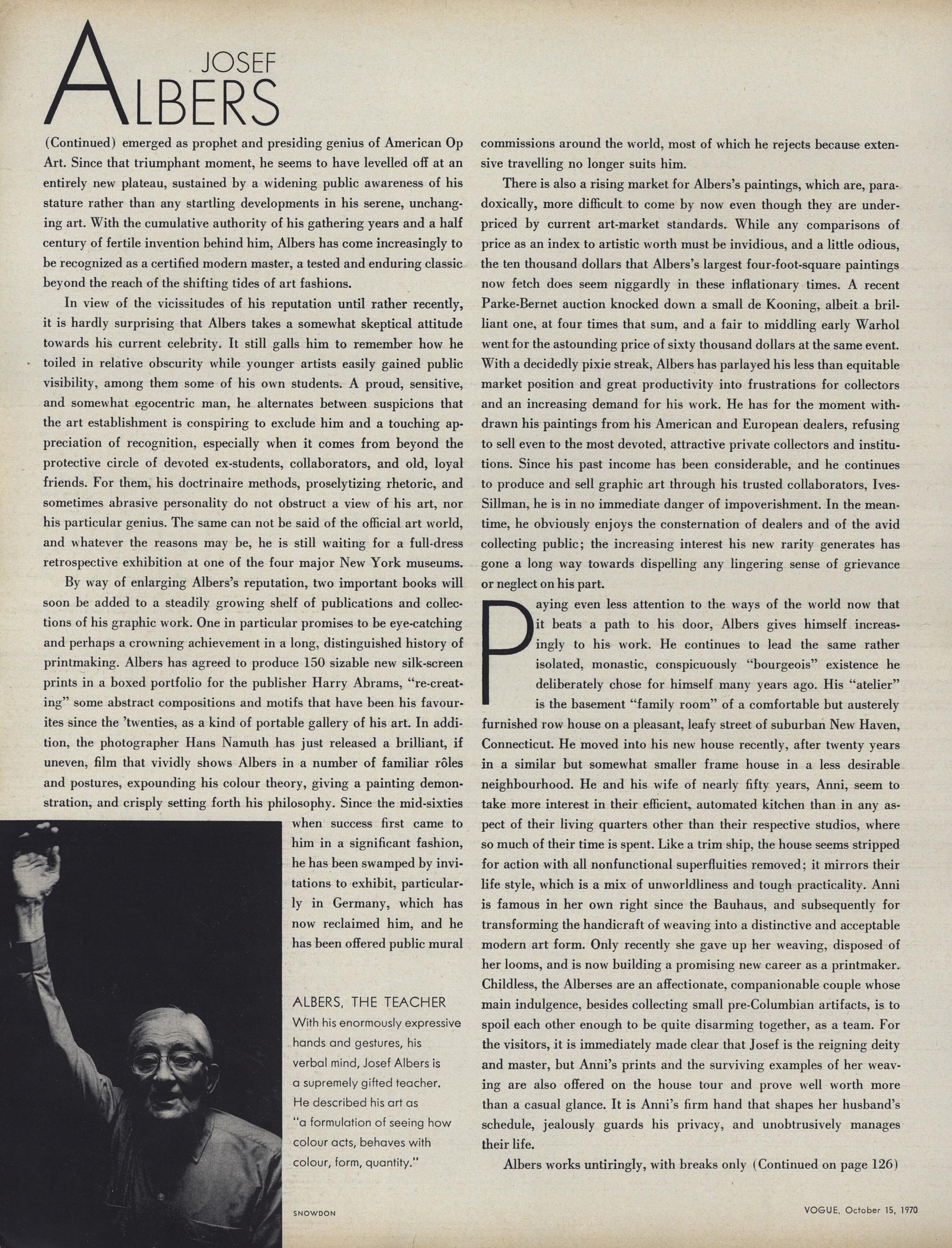 QuoteSnowdon was influential in bringing an informal approach to royal portraiture. His post-war fashion photographs were credited for ‘enlivening’ Vogue, for which he has been working for over six decades. He is also celebrated for his pioneering photo essays during nearly thirty years at The Sunday Times Magazine (from 1962 to 1990), documenting the arts and social issues.