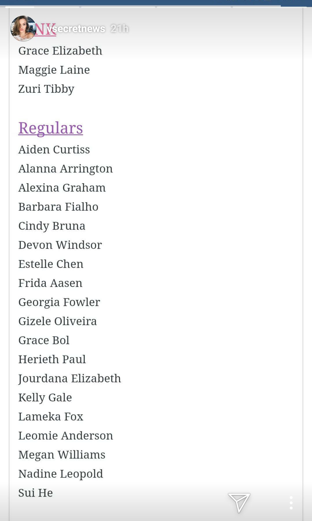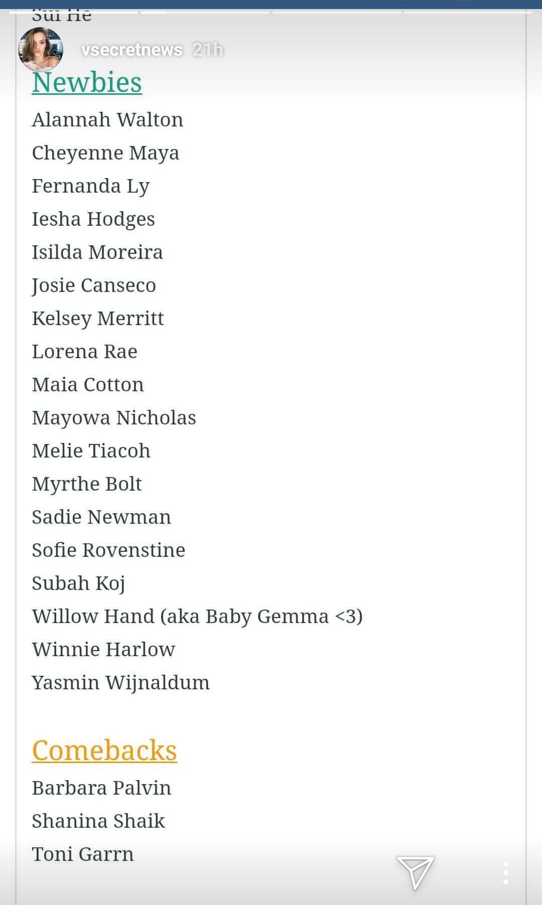 Also, someone mentioned Bridget Malcom, I highly doubt after she called out VS and her weight issues that she went to castings. And I think she's on a social media "break" at the moment.