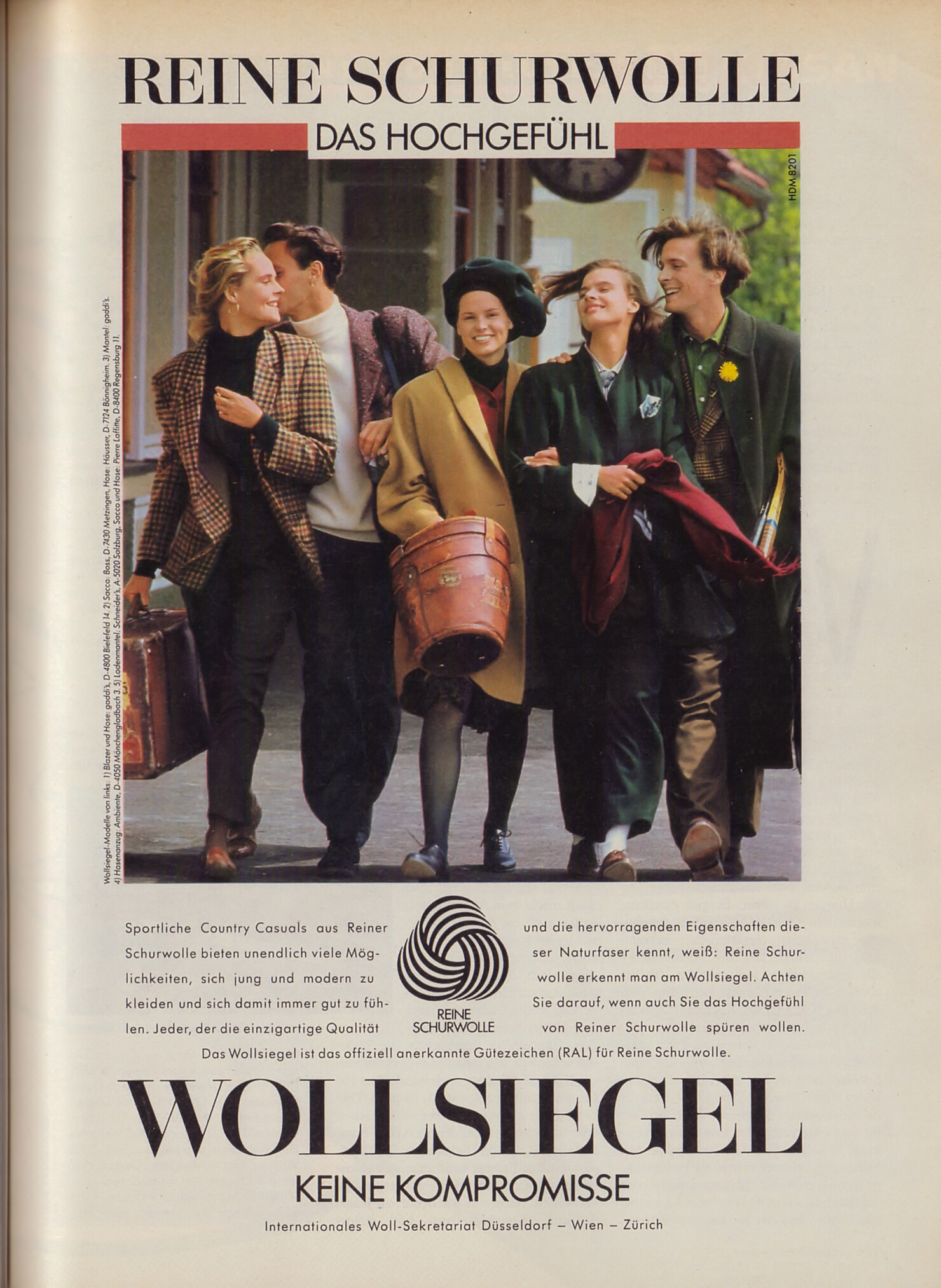REINE SCHURWOLLE WOLLSIEGEL advertisement - Carina Germany October 1988 - also showing Sylke Larsson, unknown