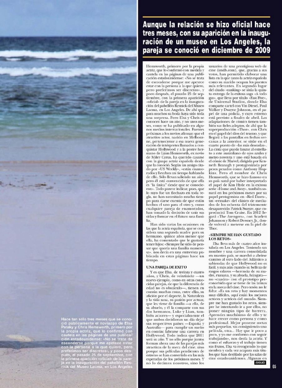Hemsworth, 27, who portrays the Marvel Comics character in the upcoming films, Thor (costarring Natalie Portman) and The Avengers, grew up in Australia. He and Pataky, 34 – best known stateside for her role alongside Samuel L. Jackson in the 2006 film Snakes on a Plane – were married over the holiday.