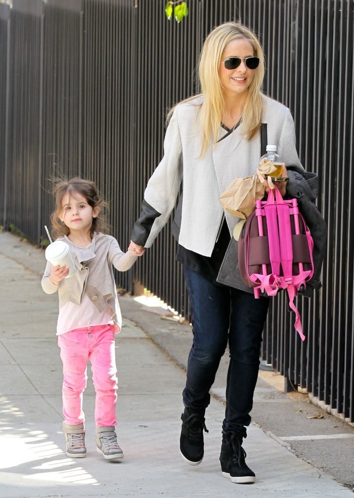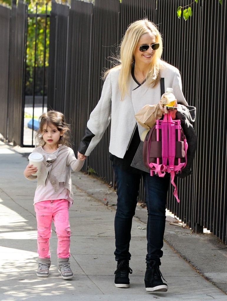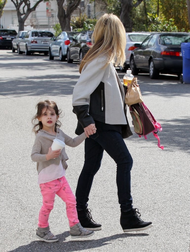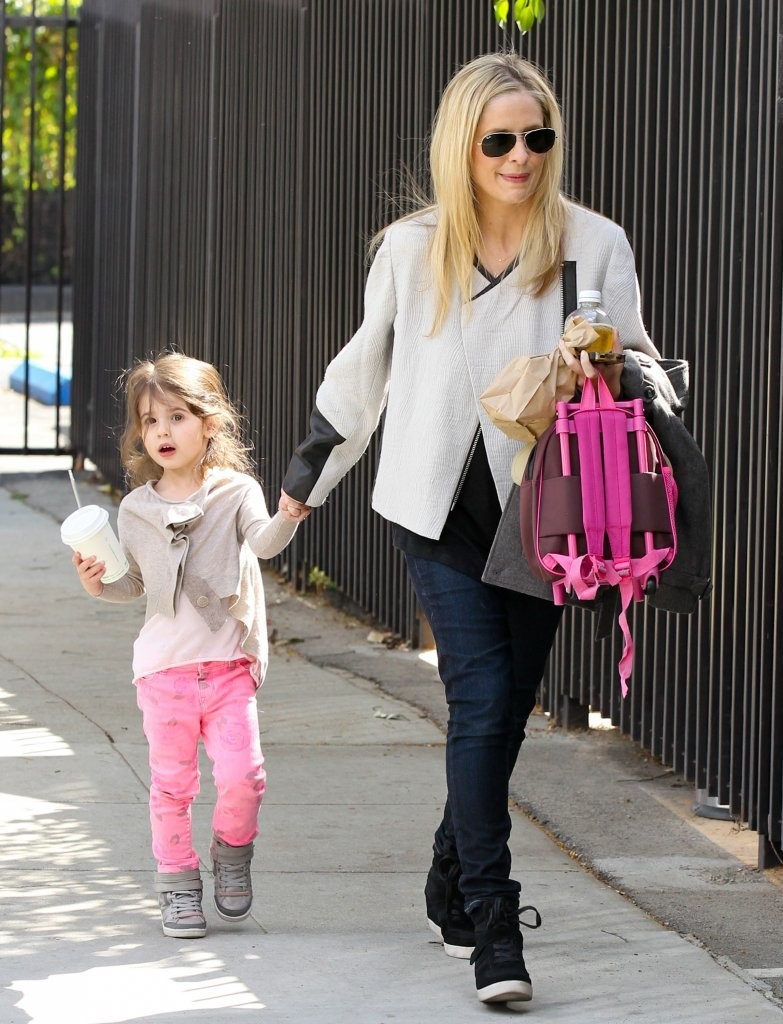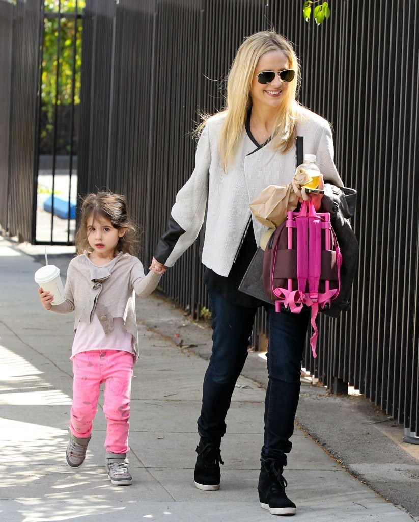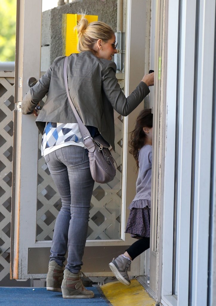 drops her daughter off at school in Santa Monica on february 21, 2013